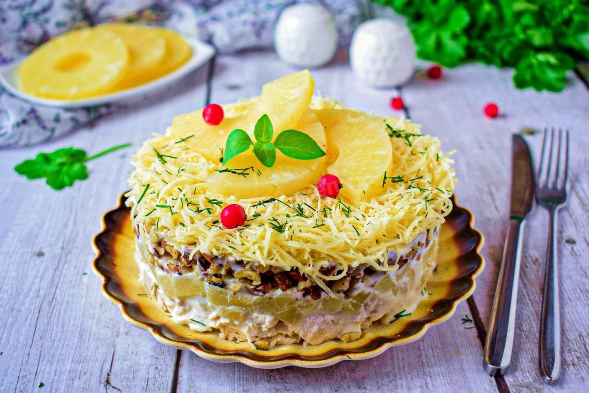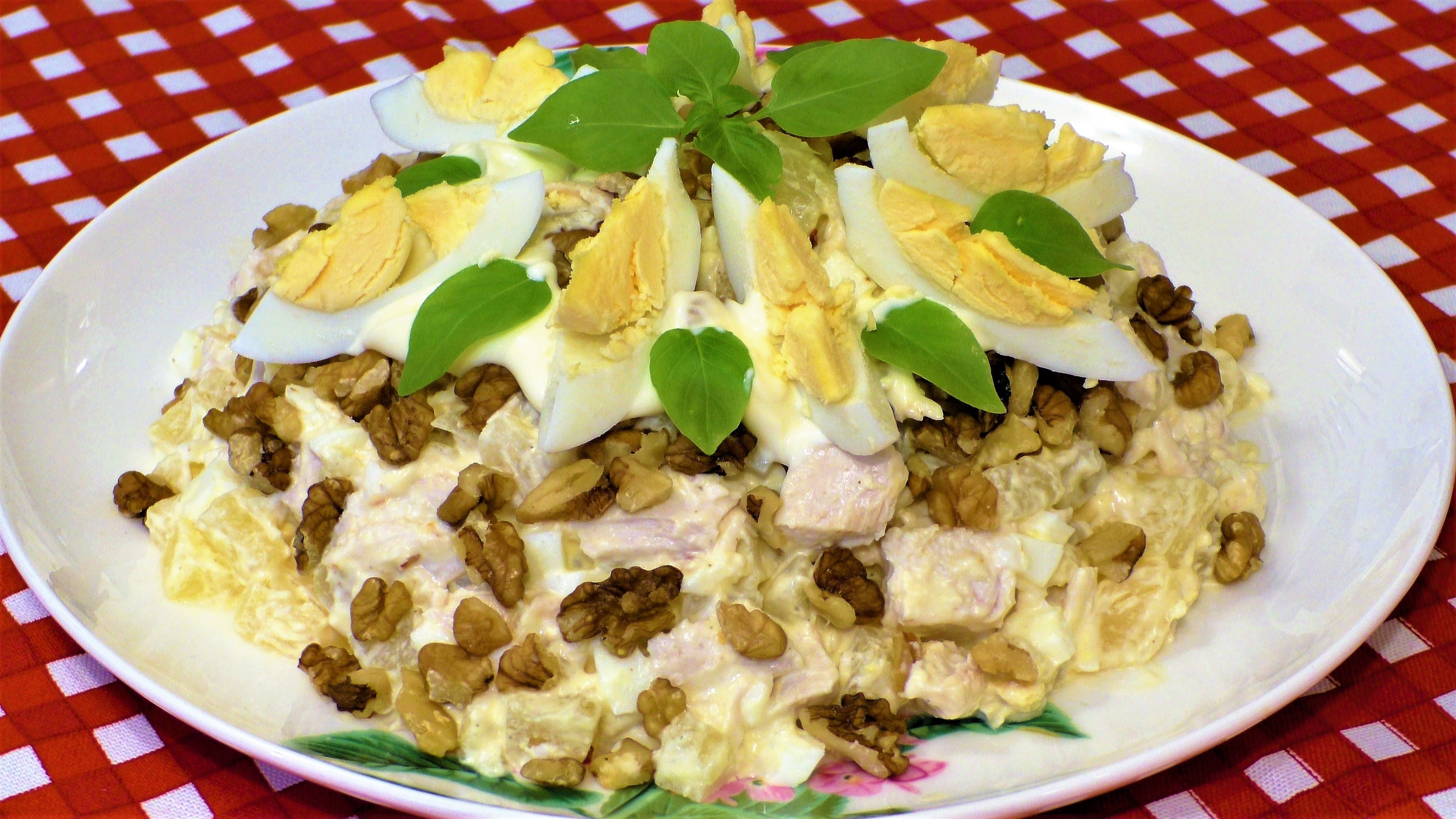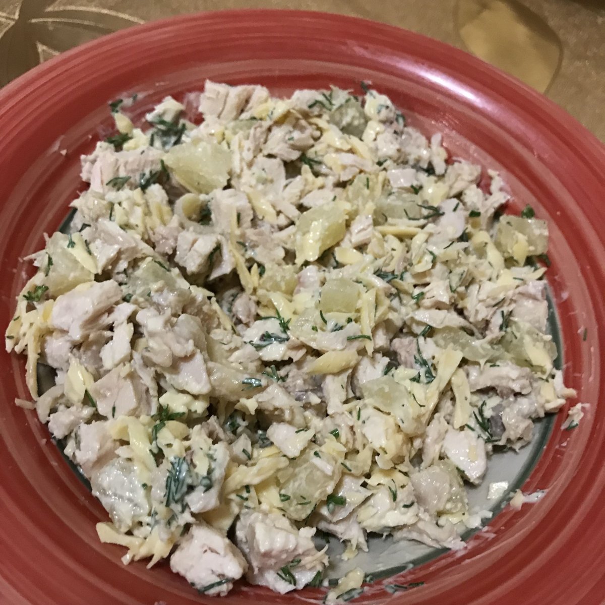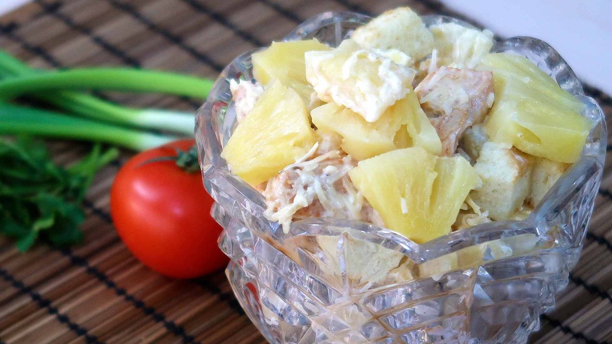 Салат с копчёной курицей и ананасами и пекинской капустой