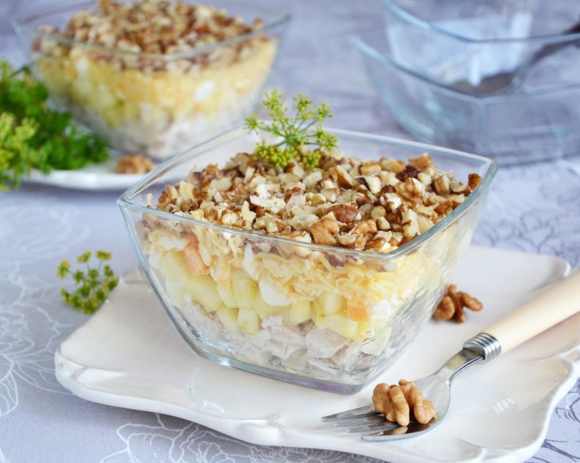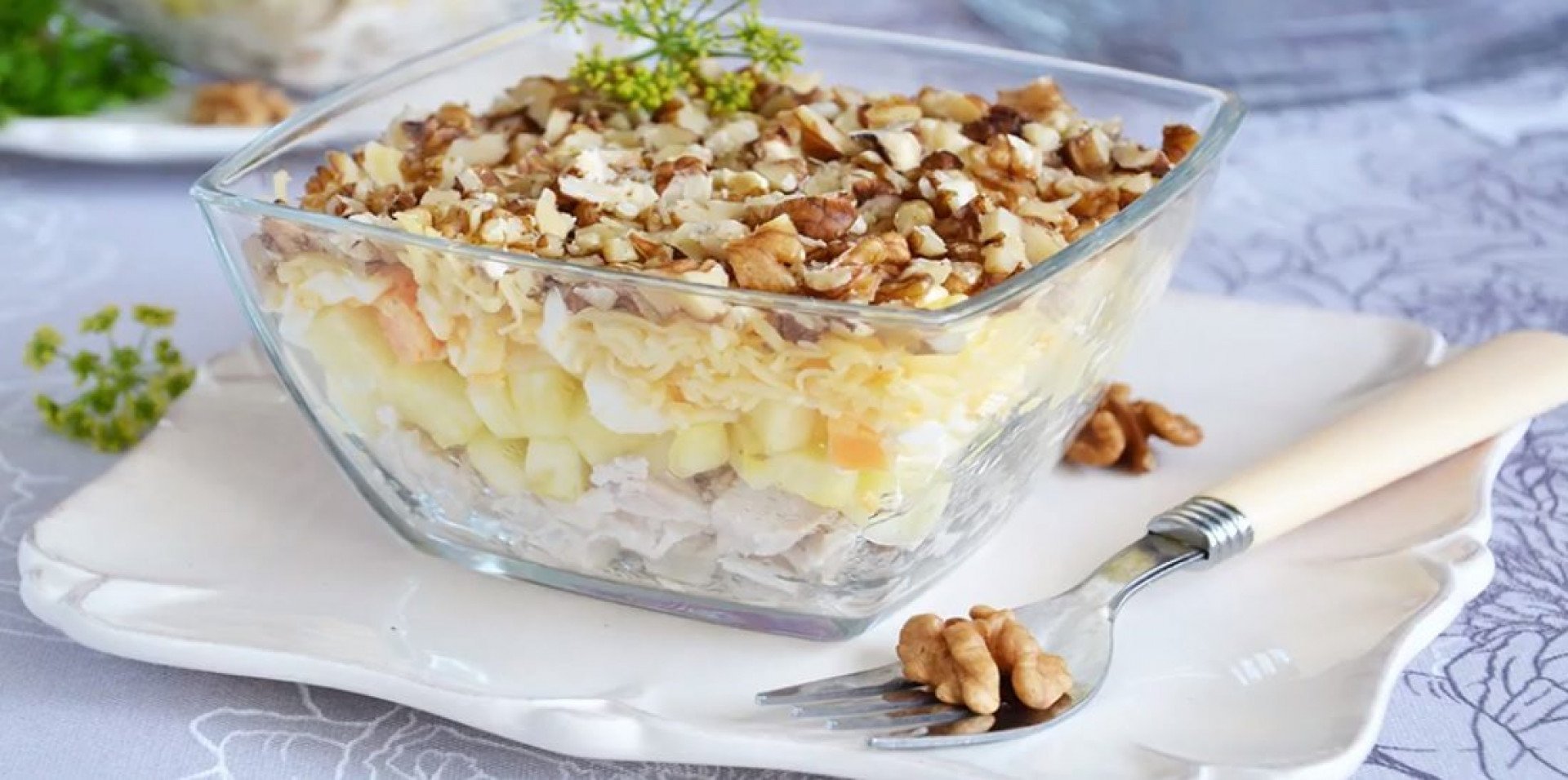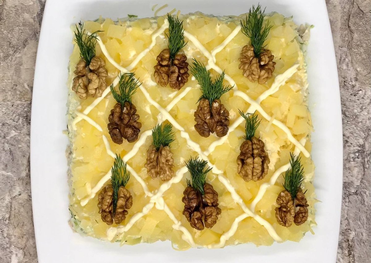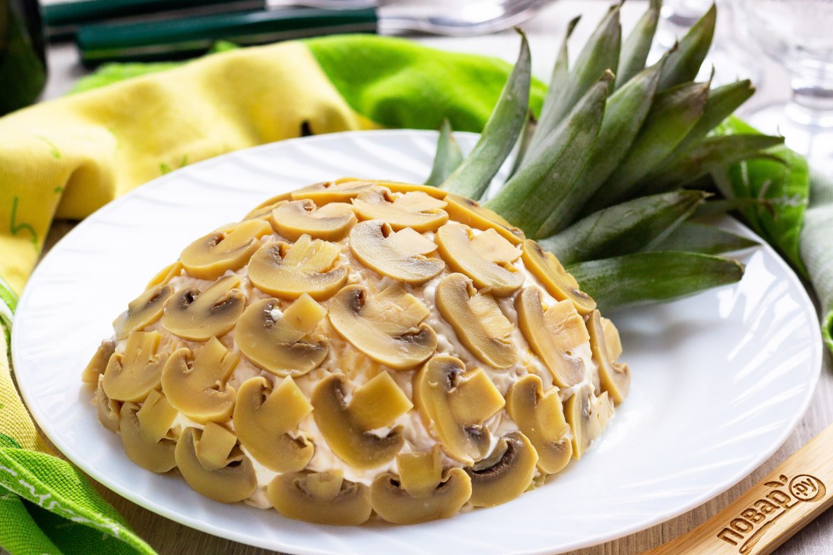 Салат с копчёной курицей и ананасами и пекинской капустой