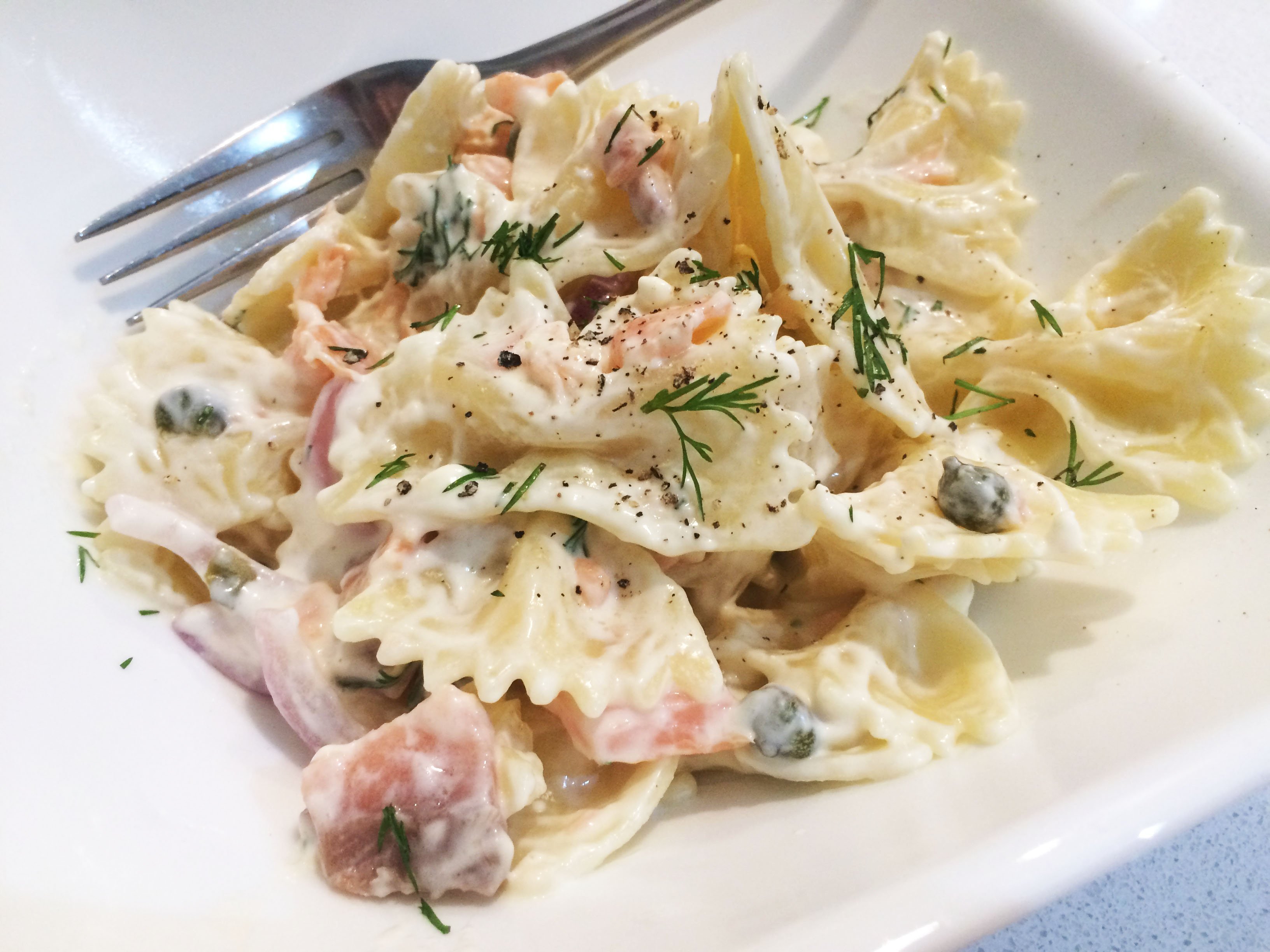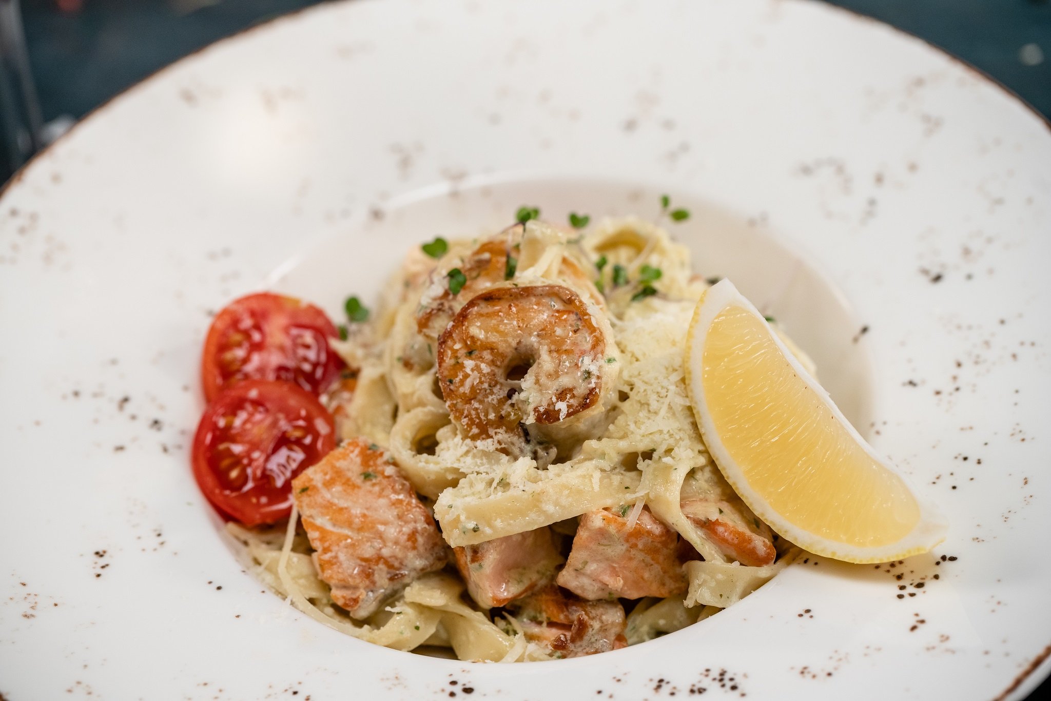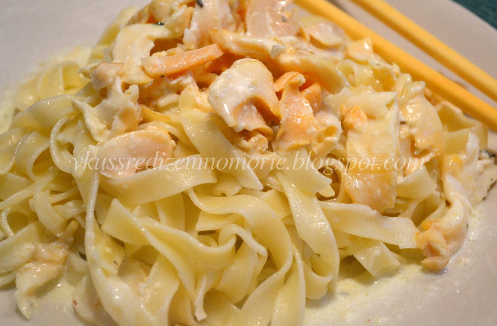 Паста с креветками и семгой