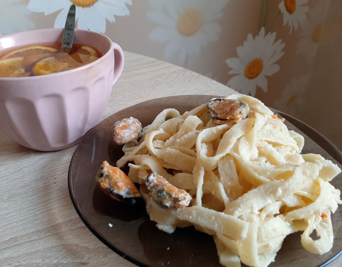 Тальятелле в сливочно-чесночном соусе