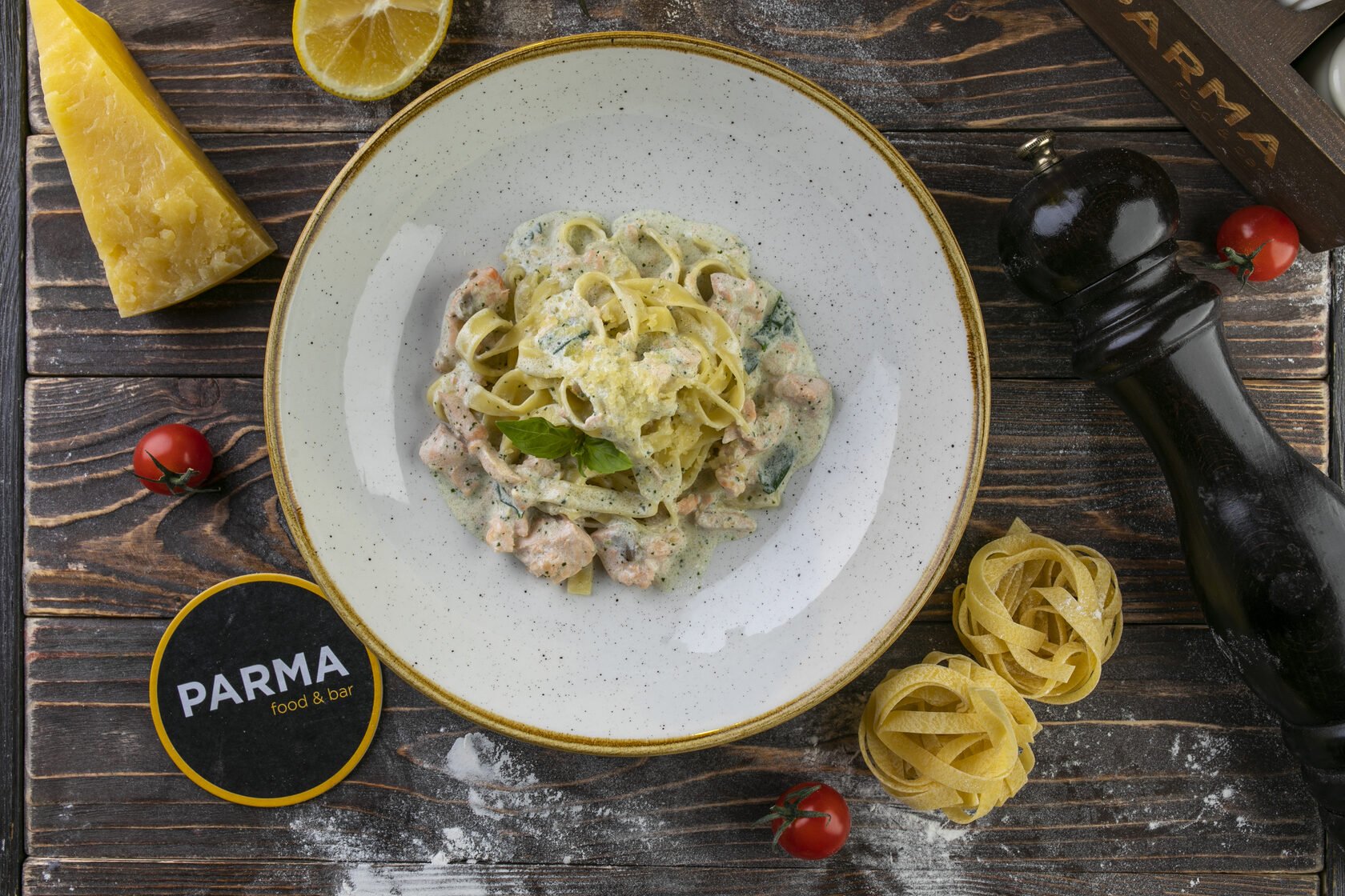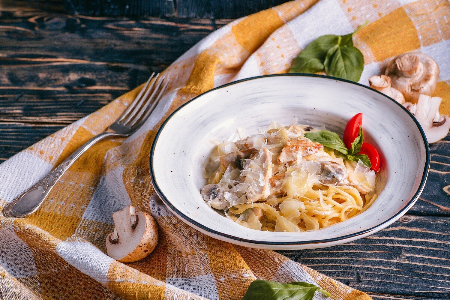 Паста с грибами в сливочном соусе с пармезаном