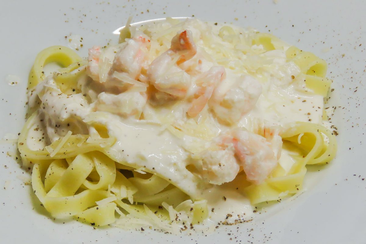 Тальятелле паста с креветками в сливочном соусе