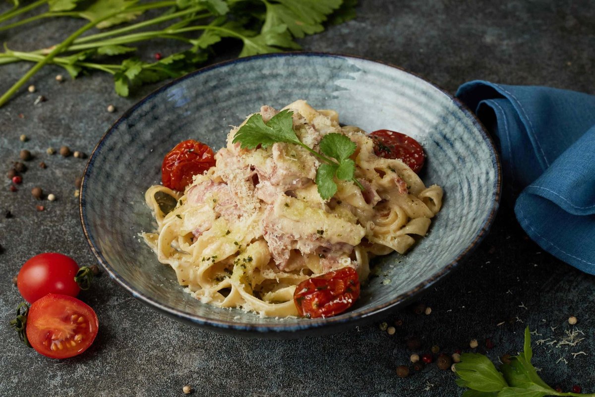 Паста карбонара таглиателли