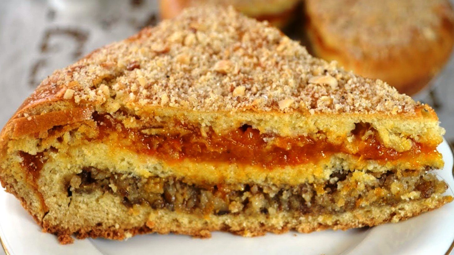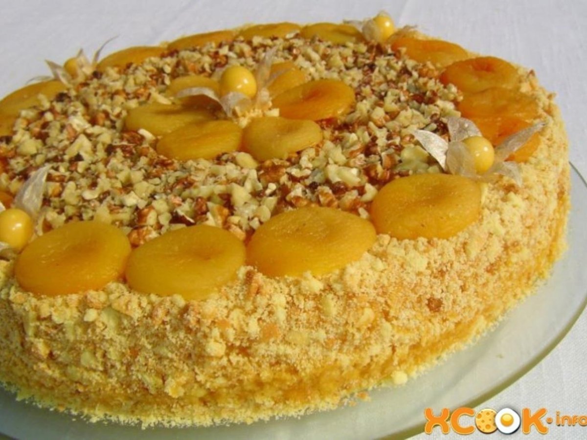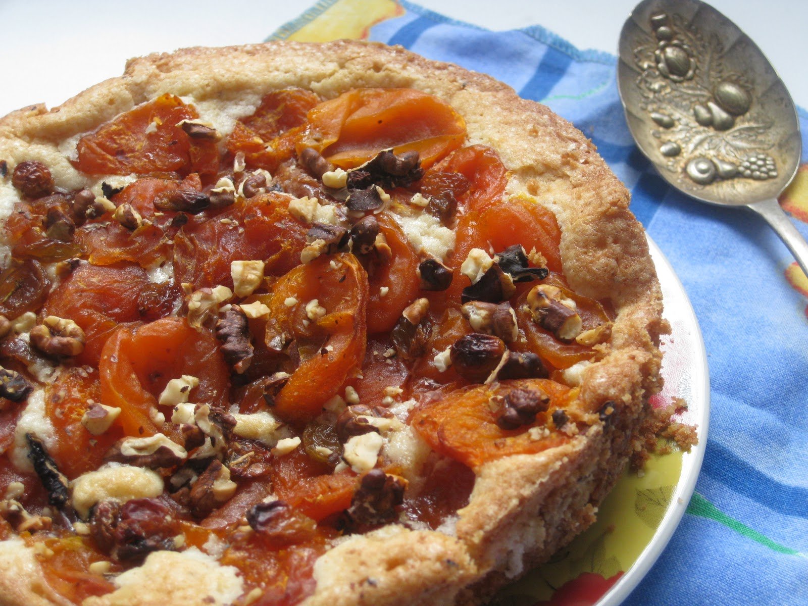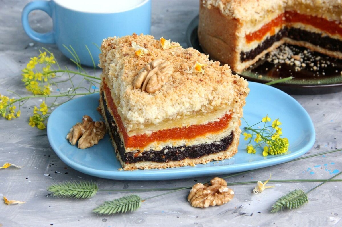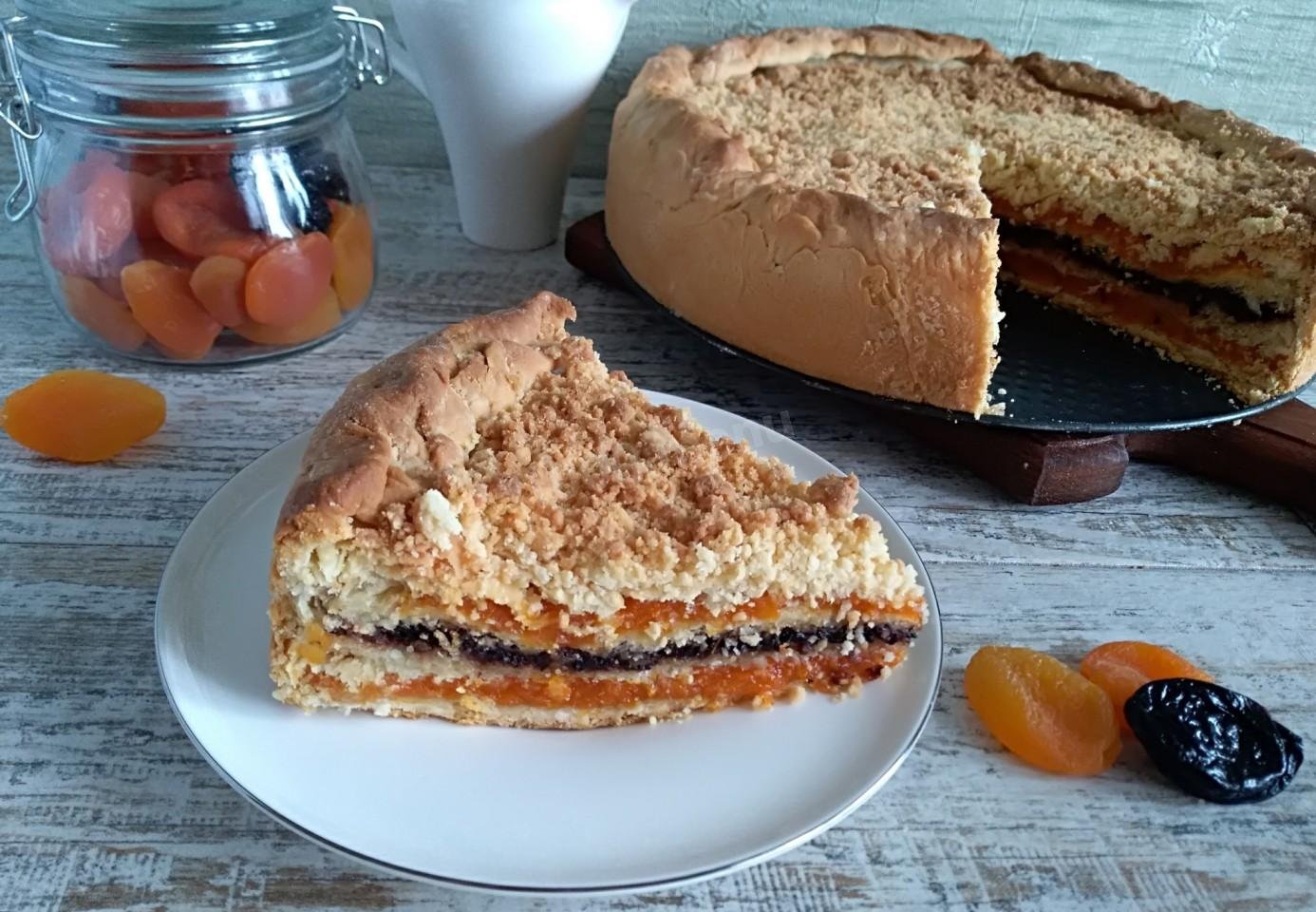 Трёхслойный пирог с курагой и черносливом и лимоном