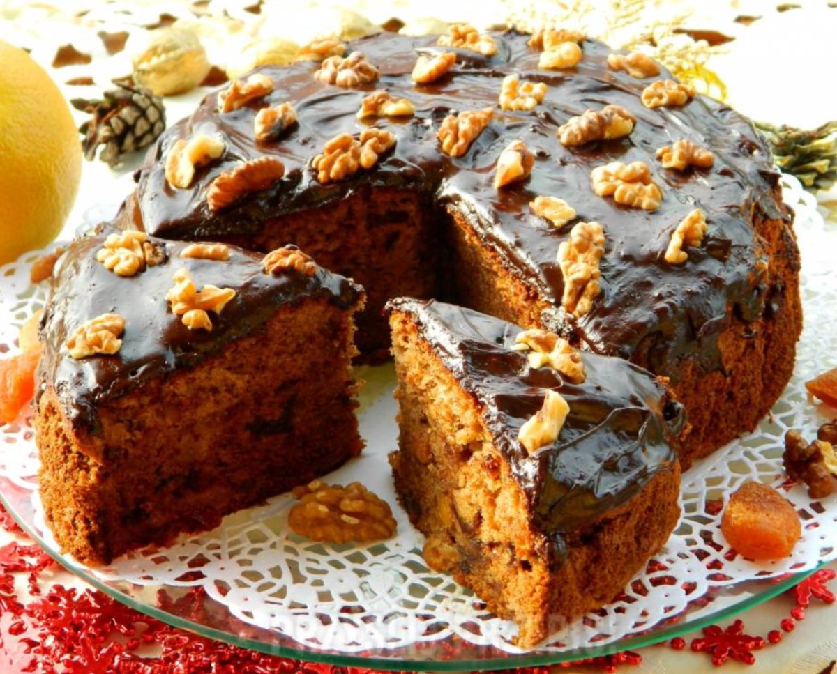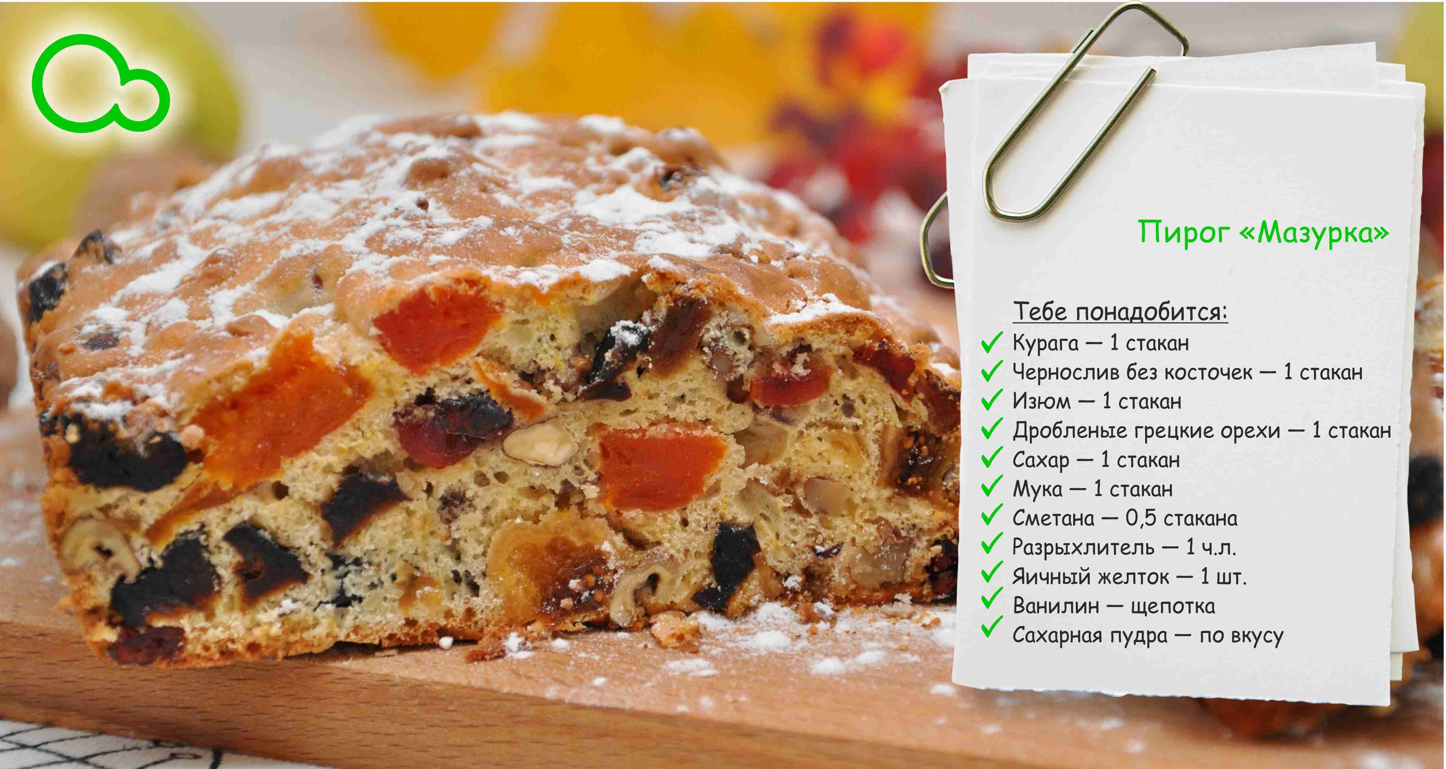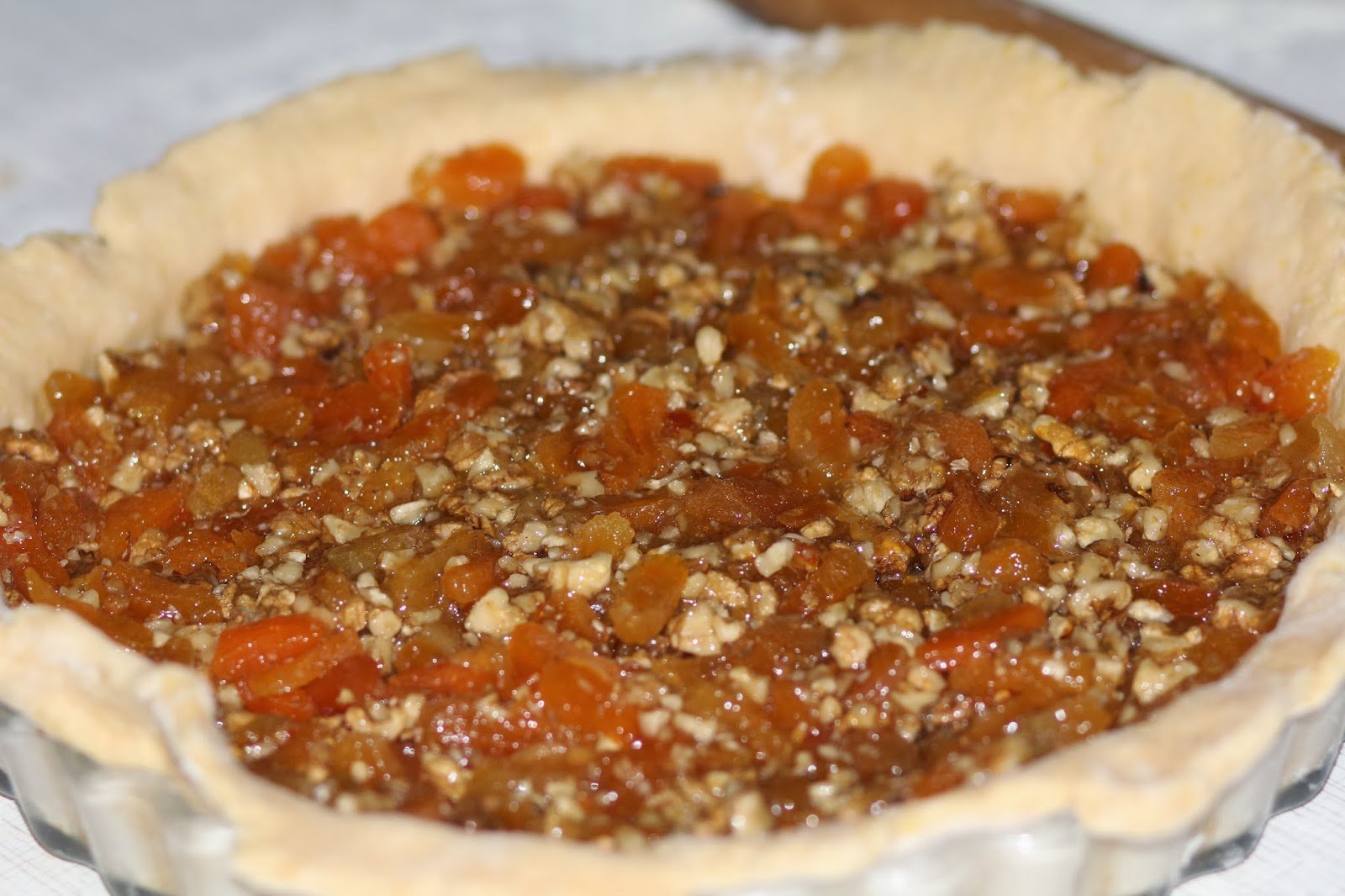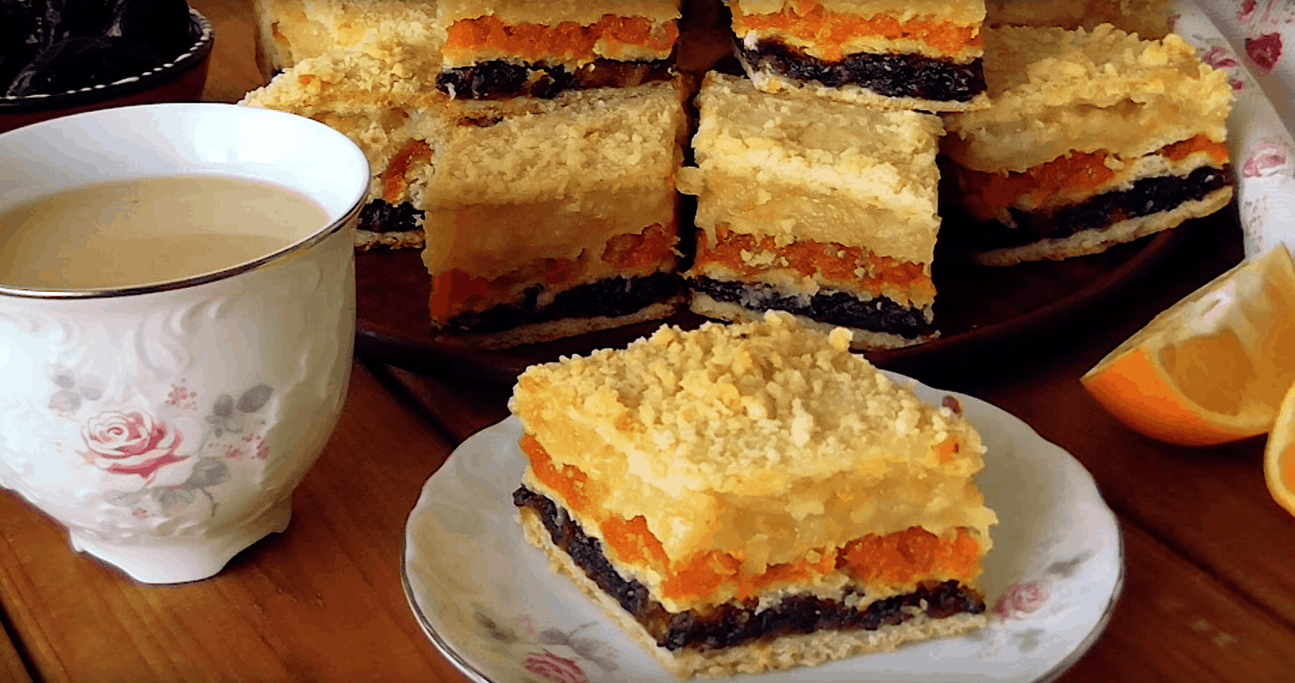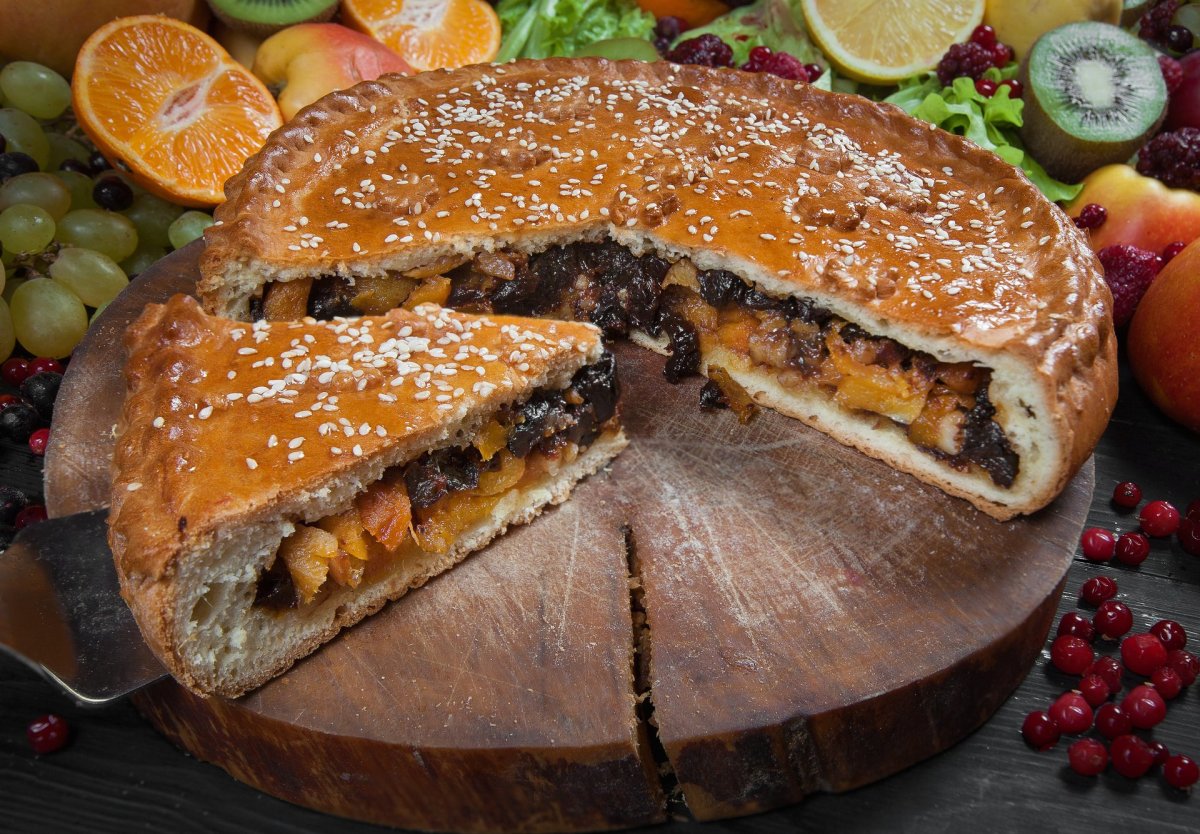 Трёхслойный пирог с курагой и черносливом и лимоном
