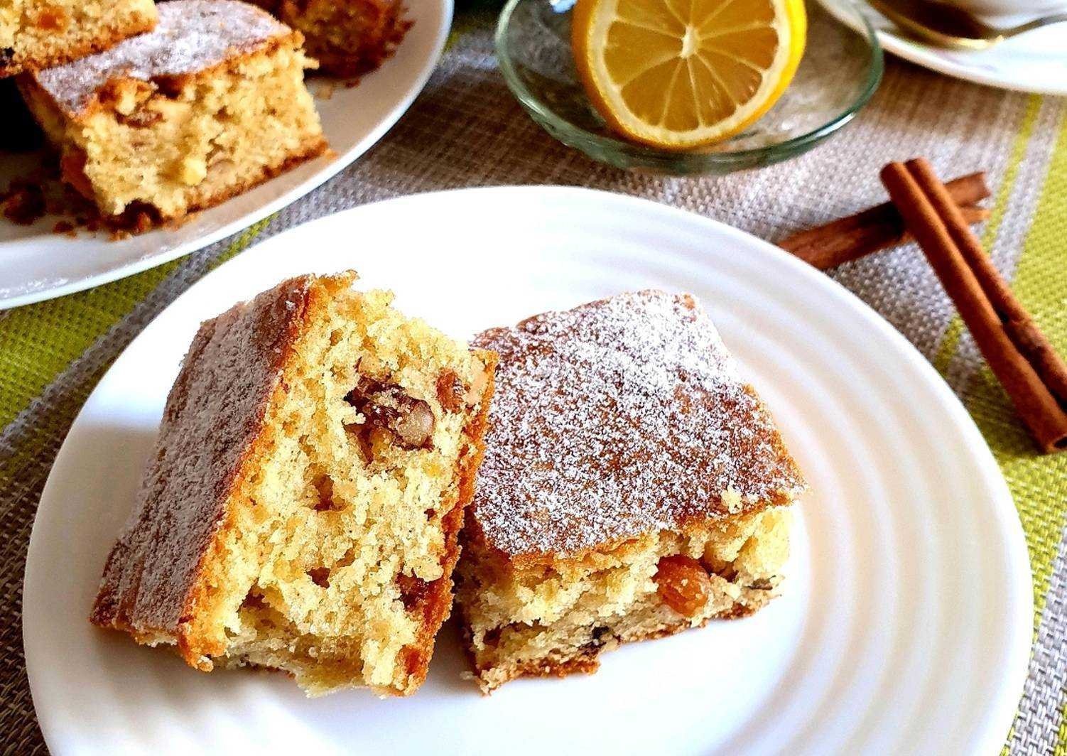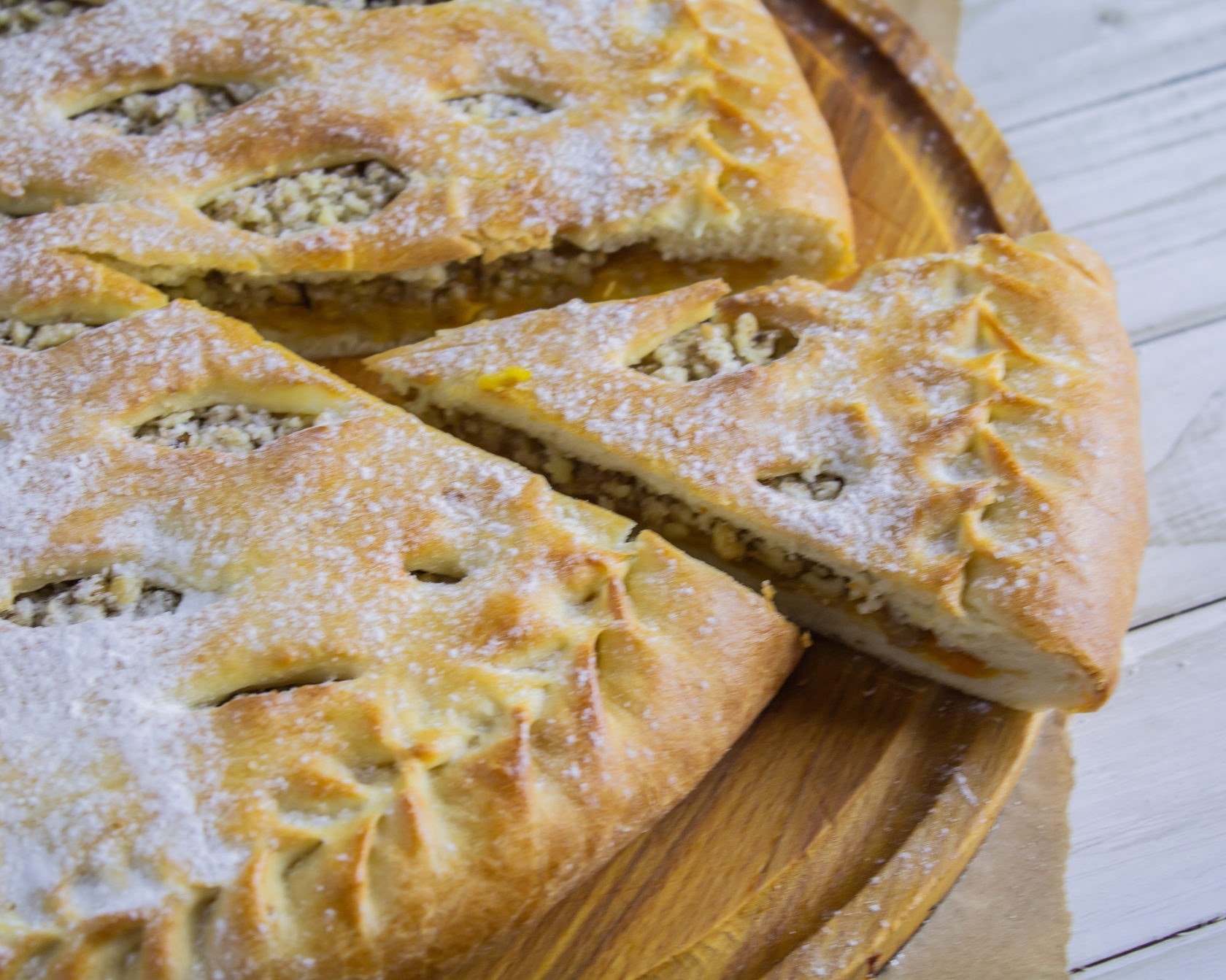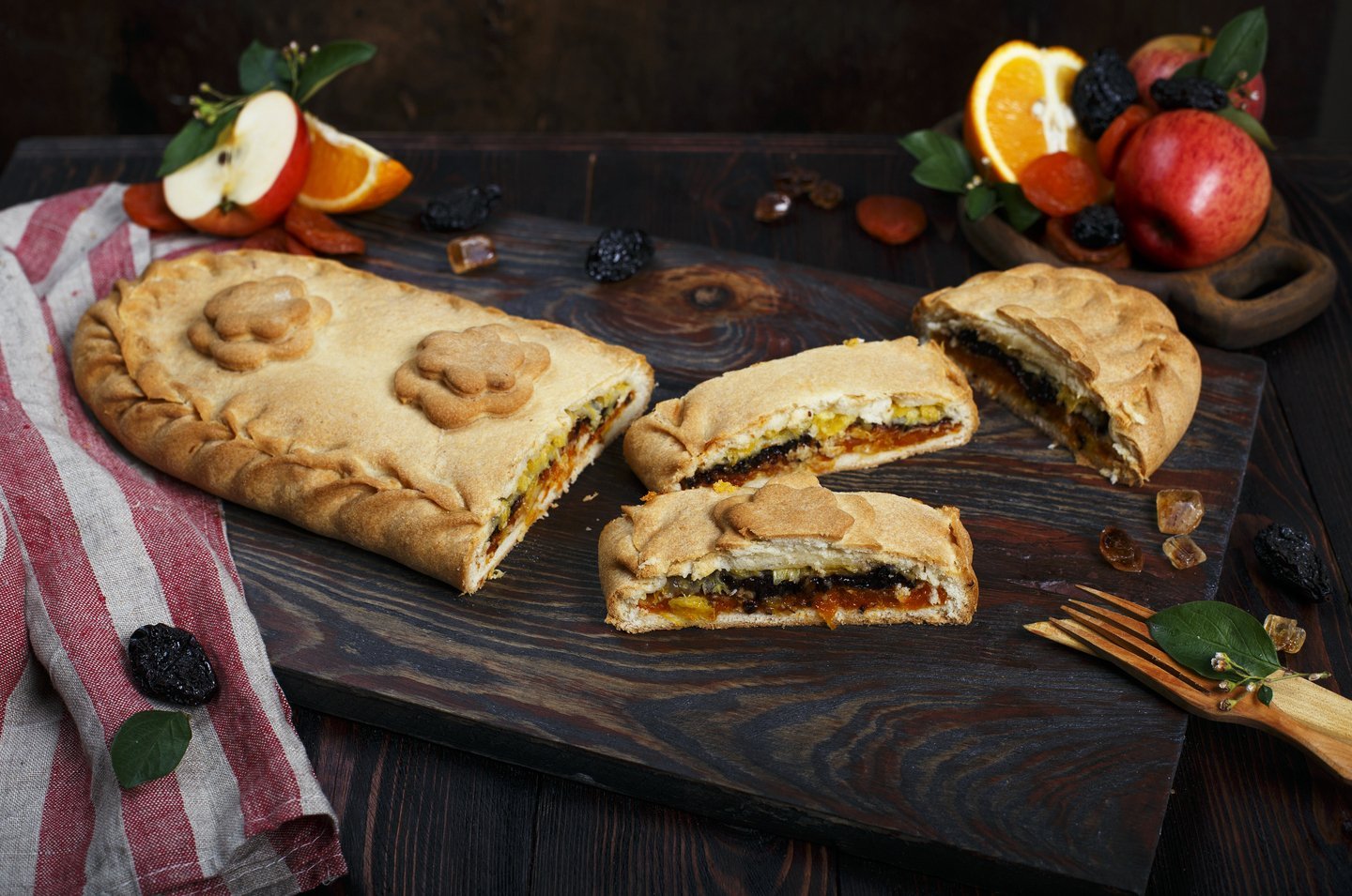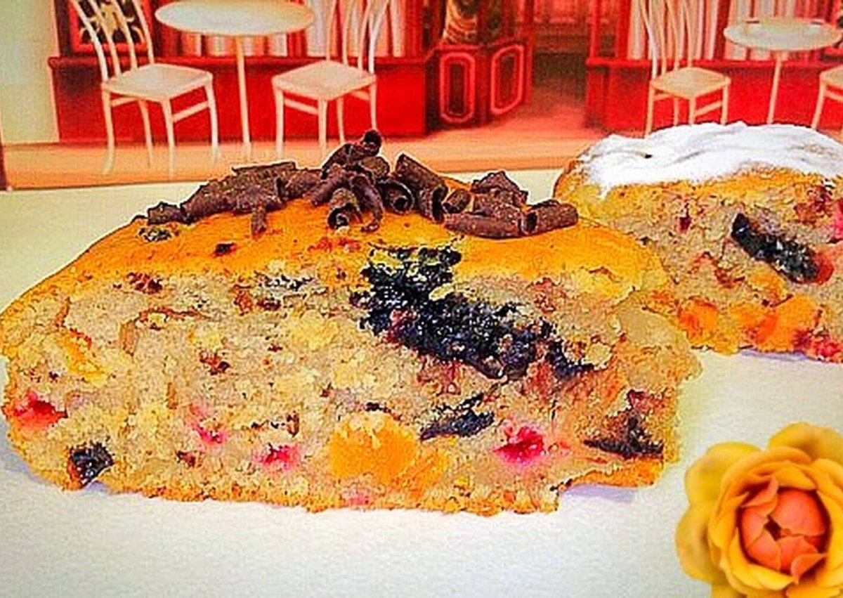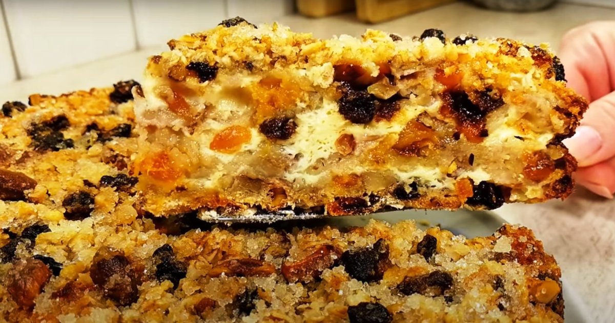 Трёхслойный пирог с курагой и черносливом и лимоном