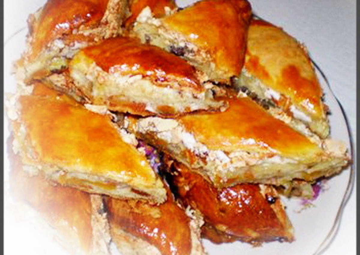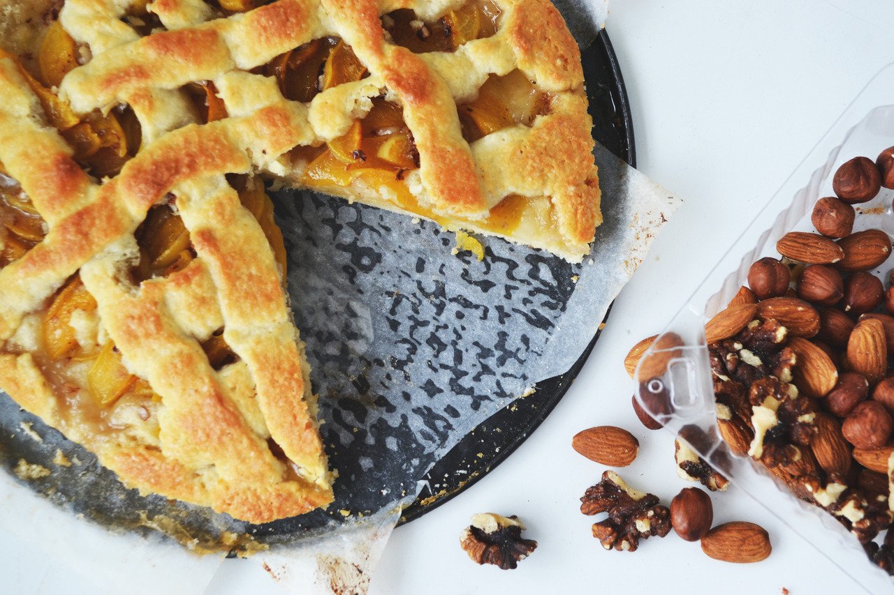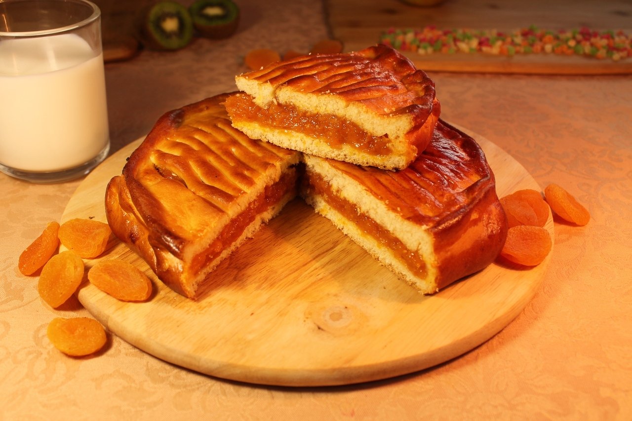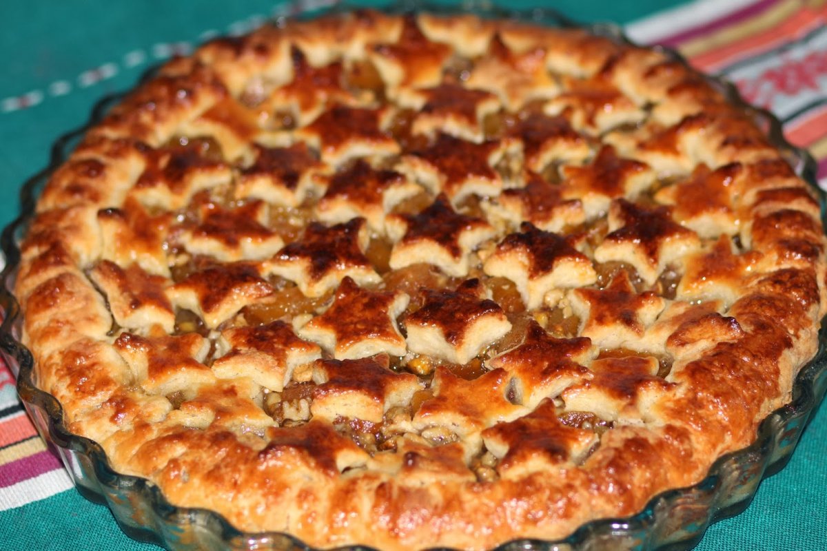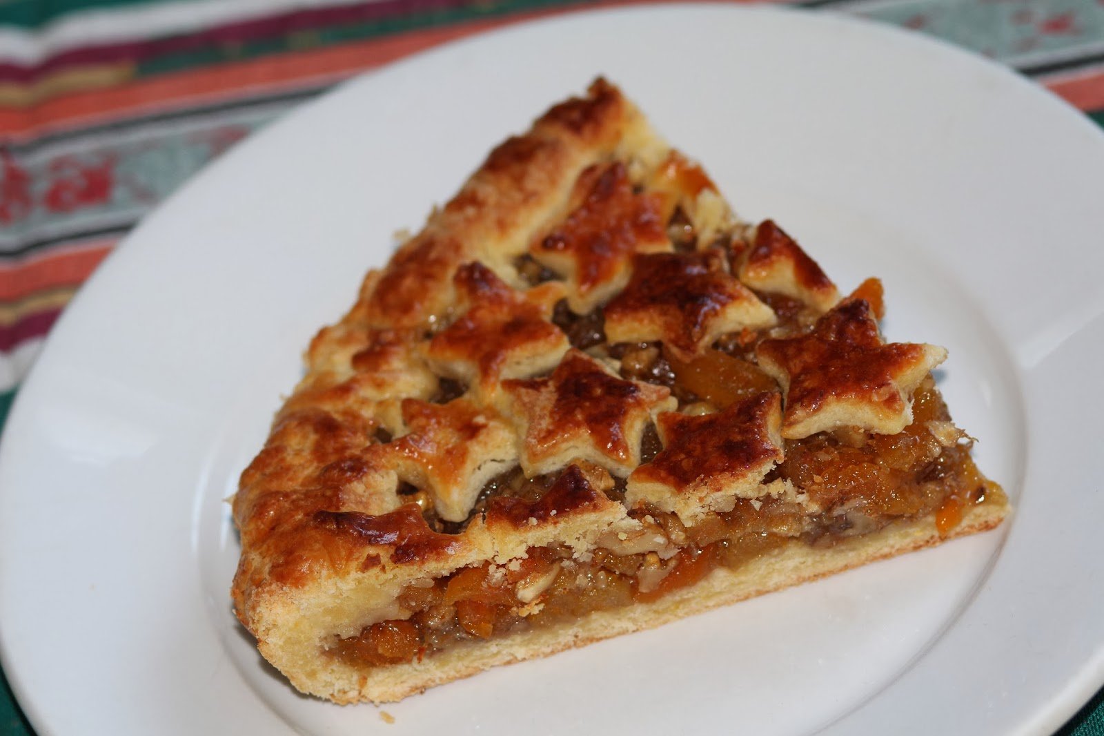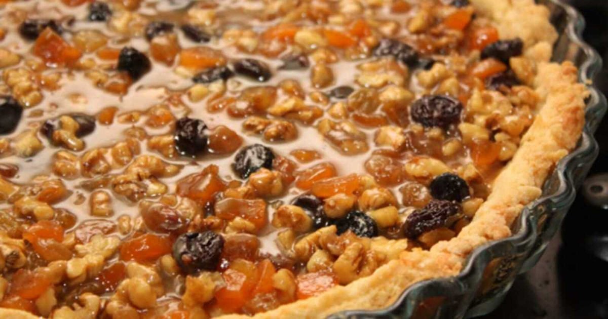 Трёхслойный пирог с курагой и черносливом и лимоном