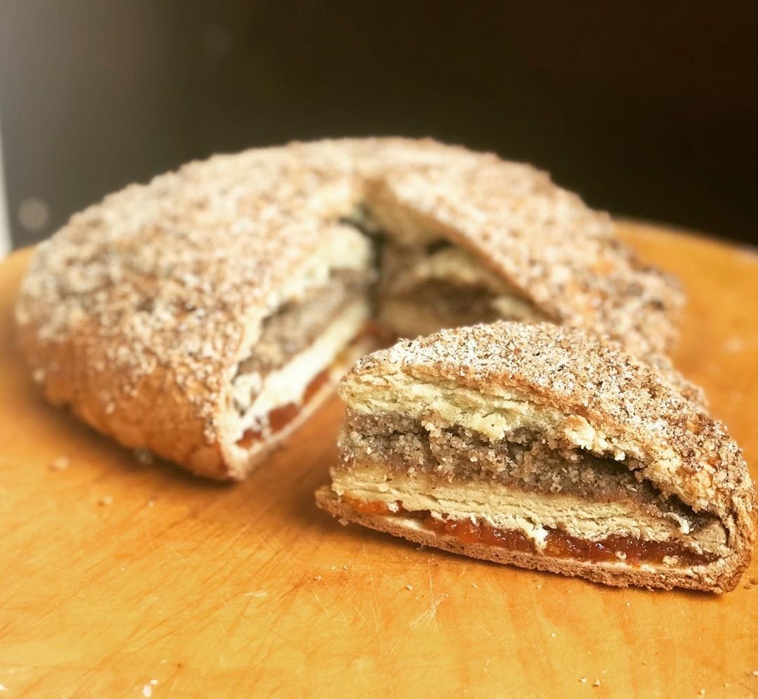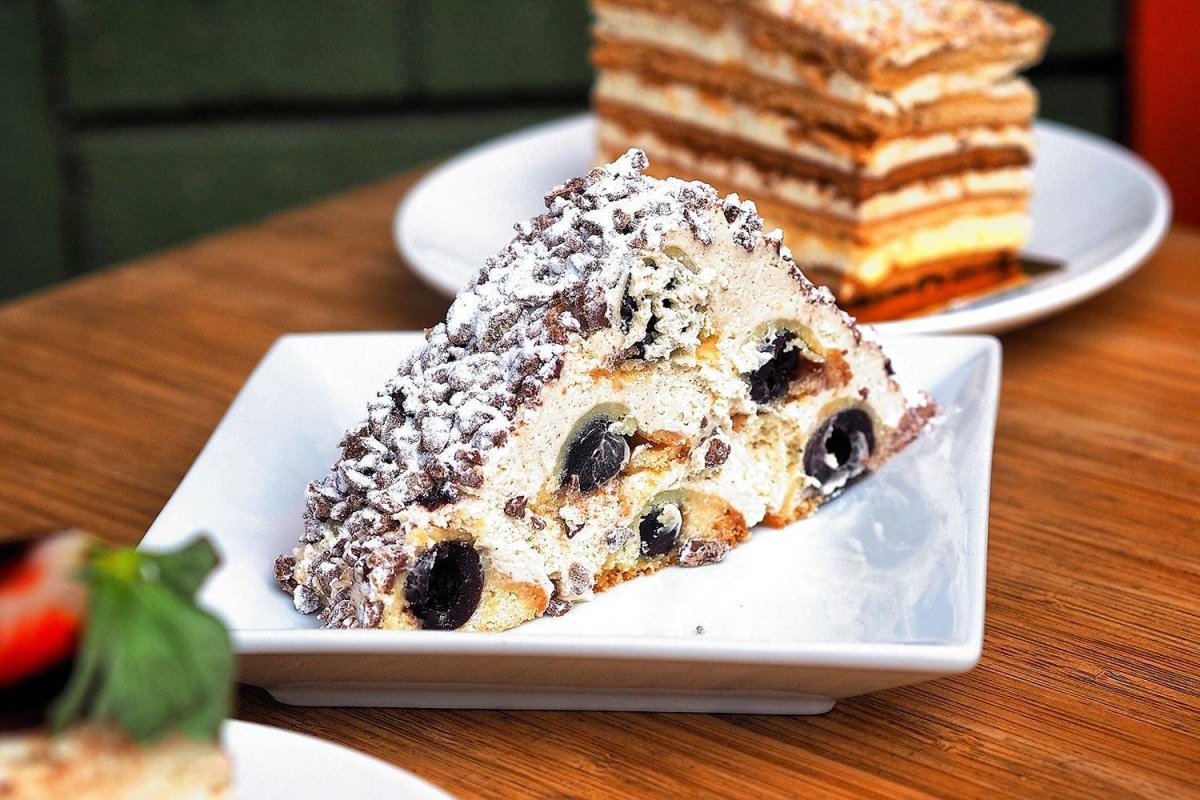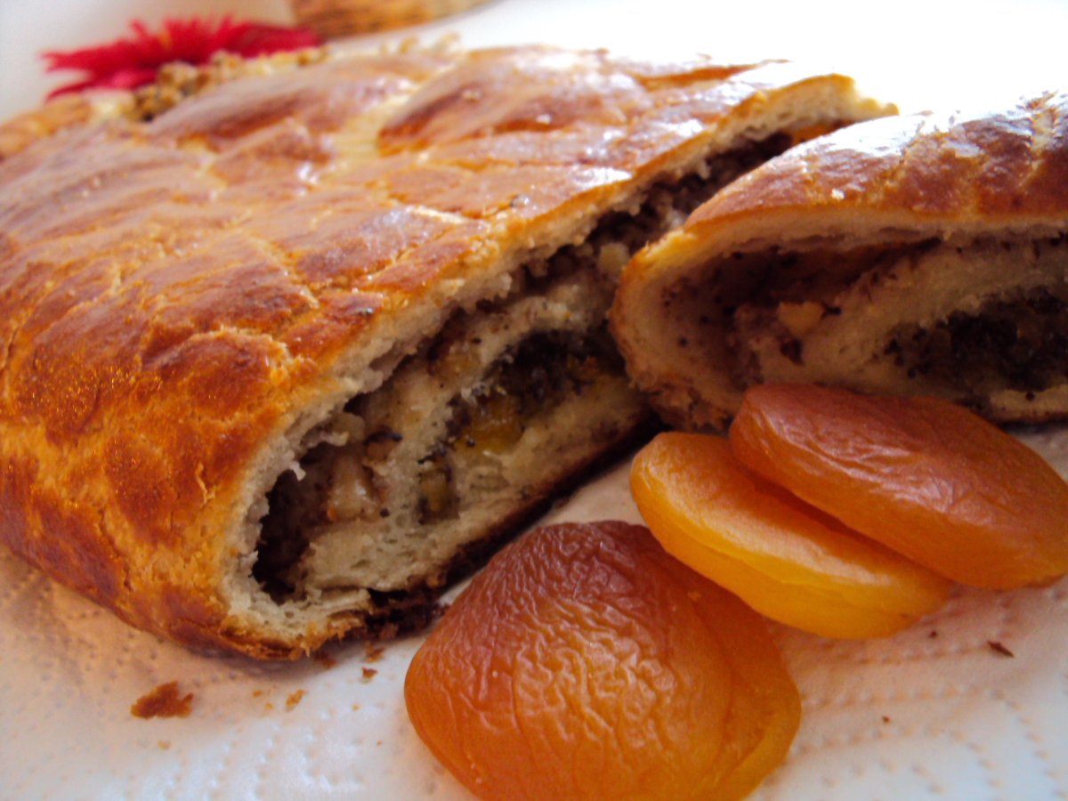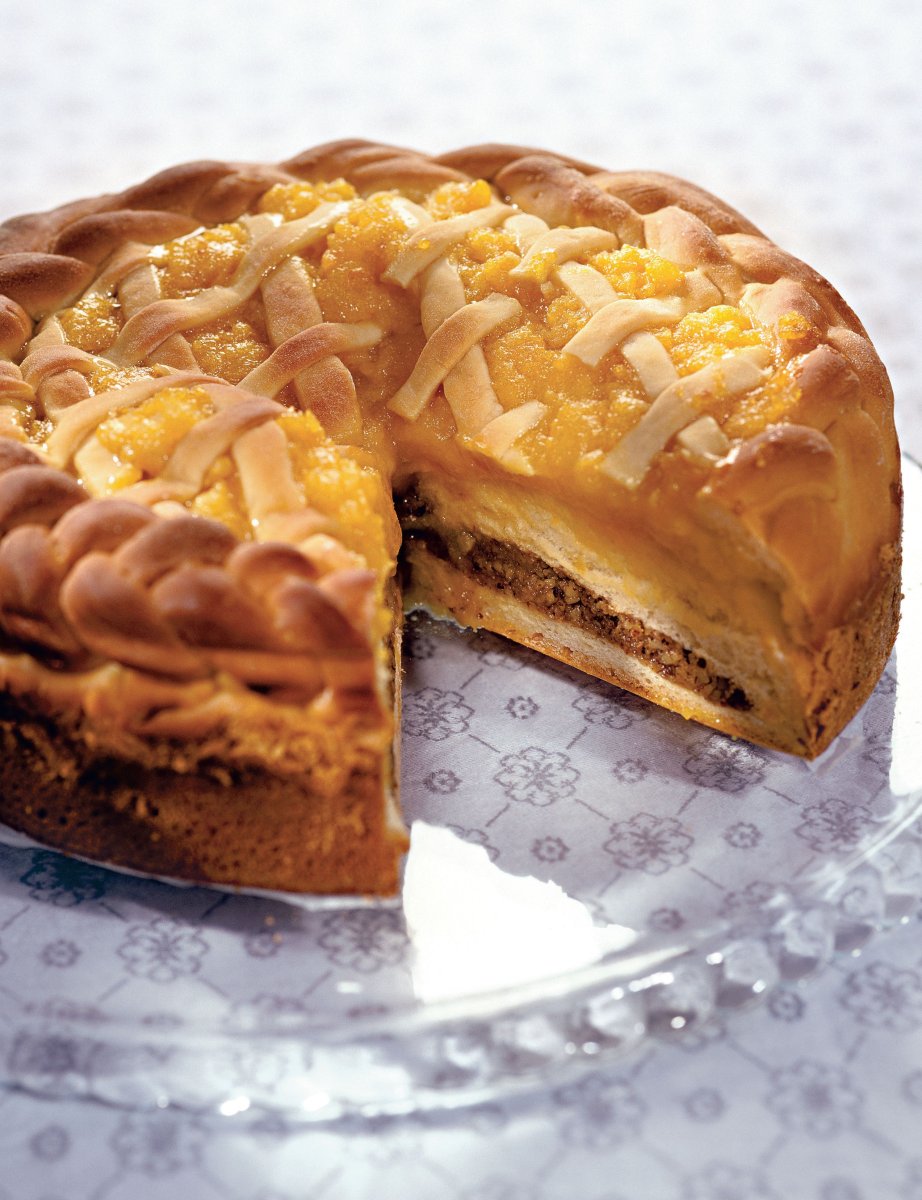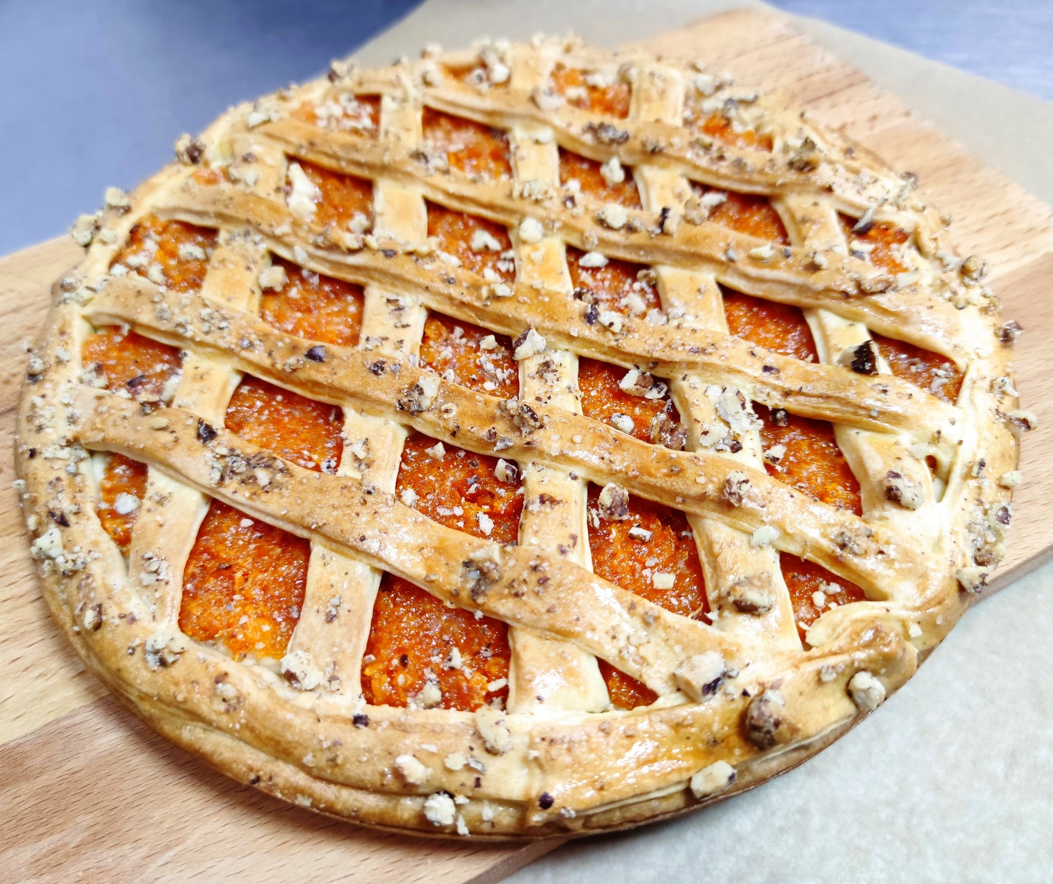 Трёхслойный пирог с курагой и черносливом и лимоном