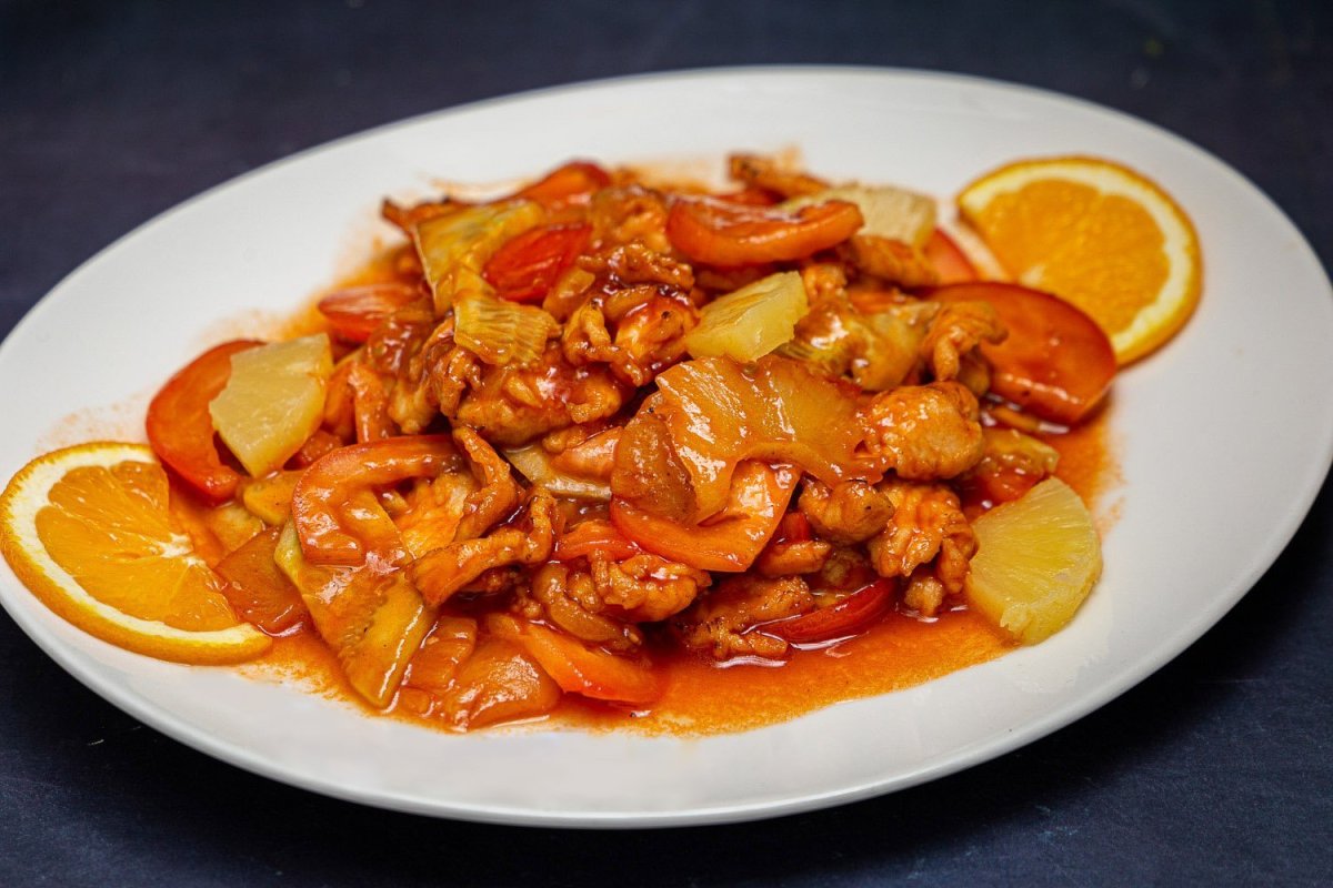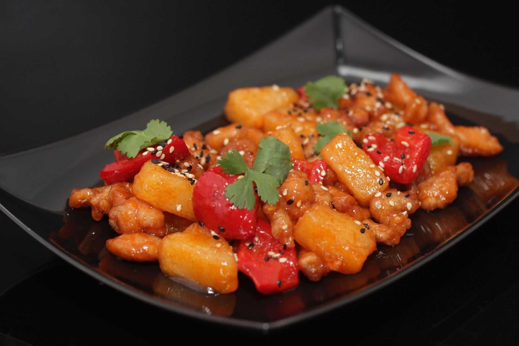Курица с ананасами в кисло-сладком соусе