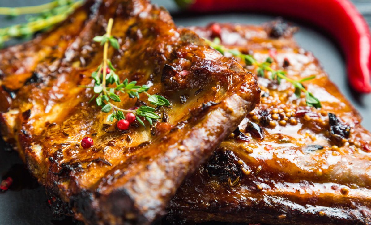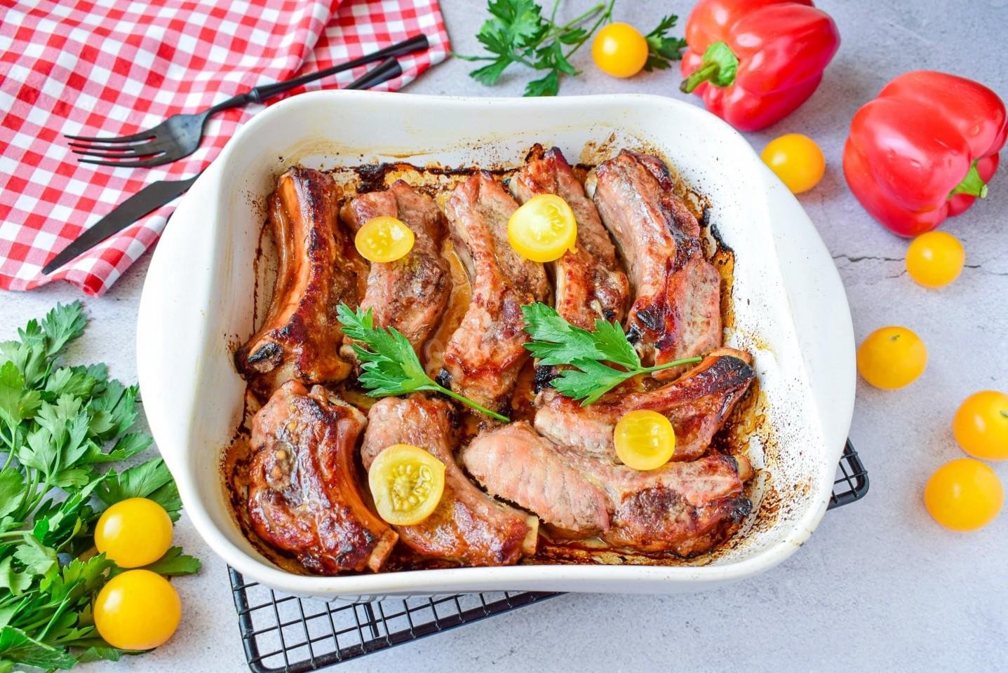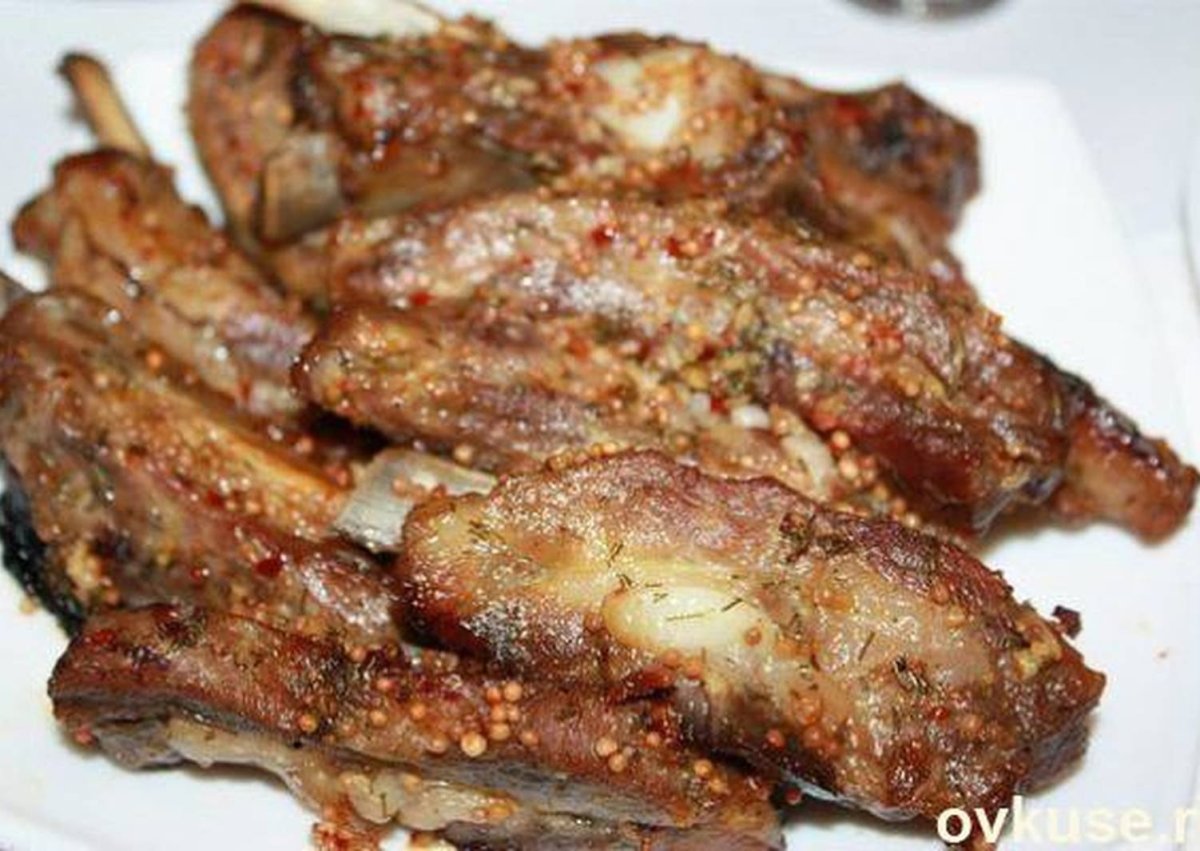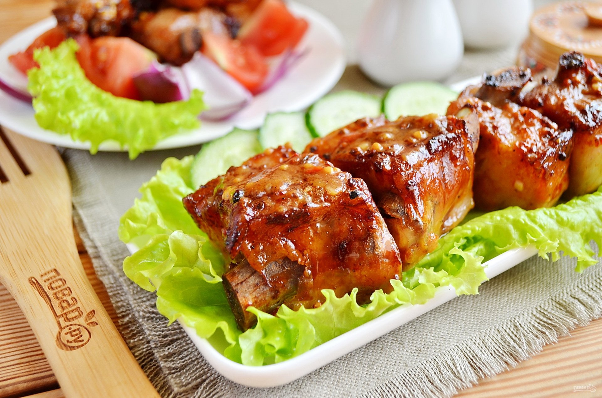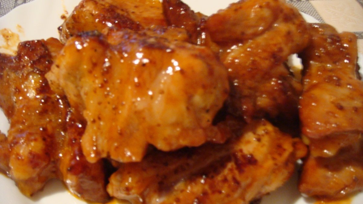Свиные рёбрышки в медово-горчичном соусе на сковороде