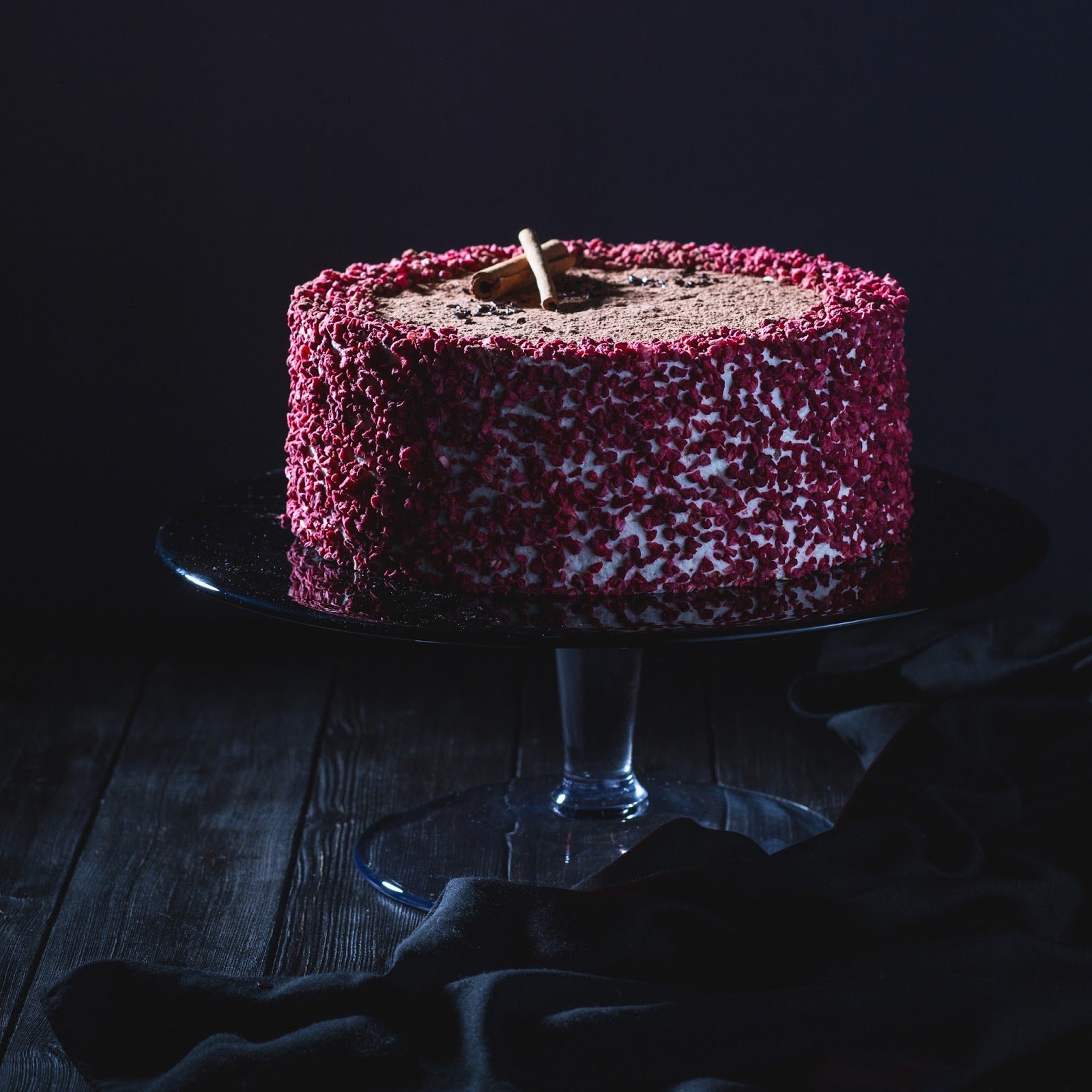 Черный торт с малиной