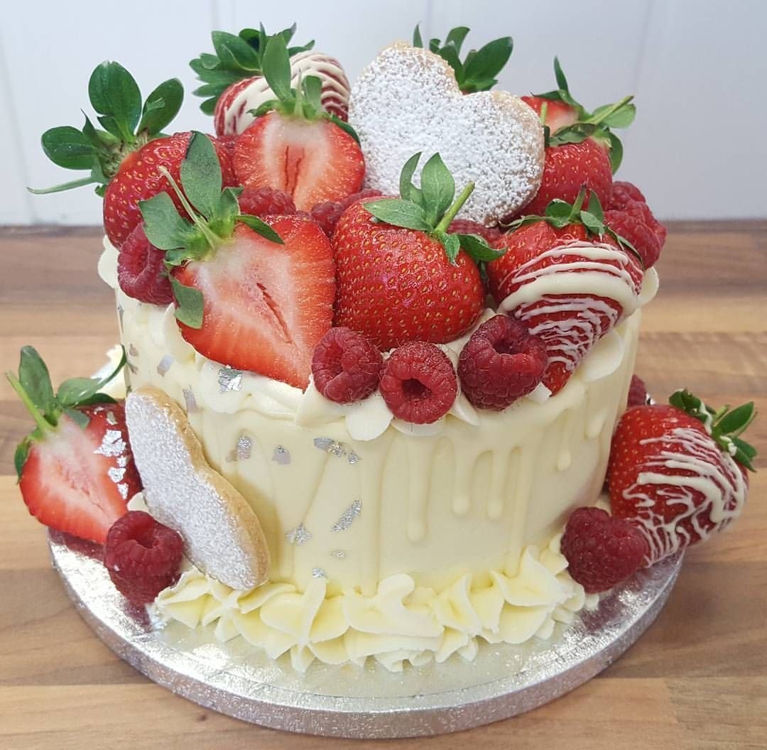 Торт сердце с клубникой