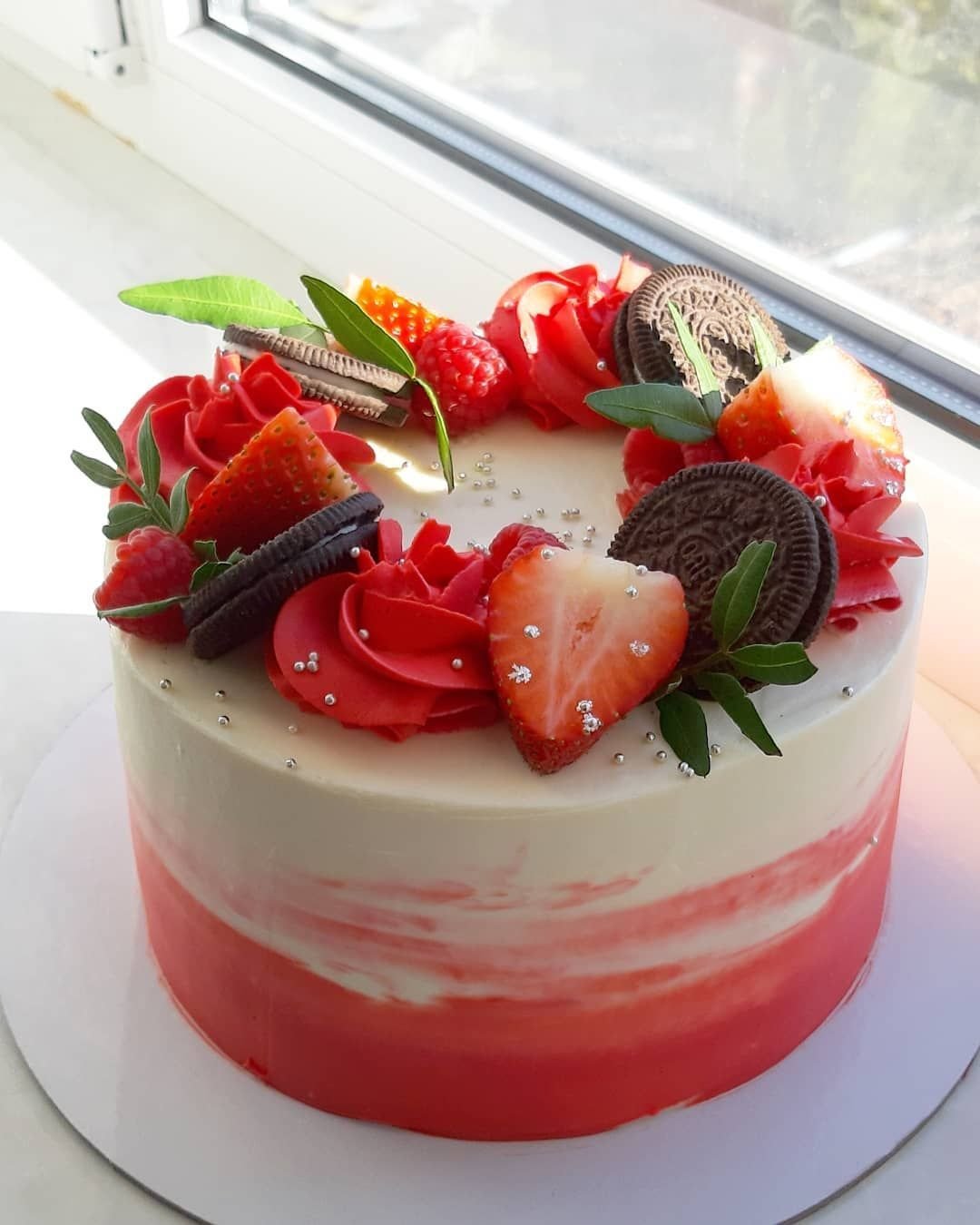 Клубничный торт серый красный