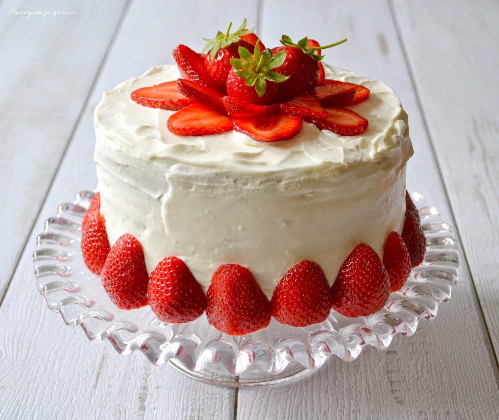 Бисквитный торт с кремом чиз и клубникой