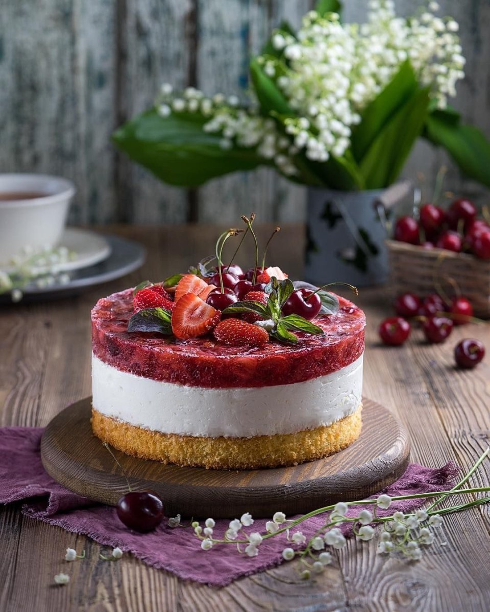 Чизкейк с клубникой и желе
