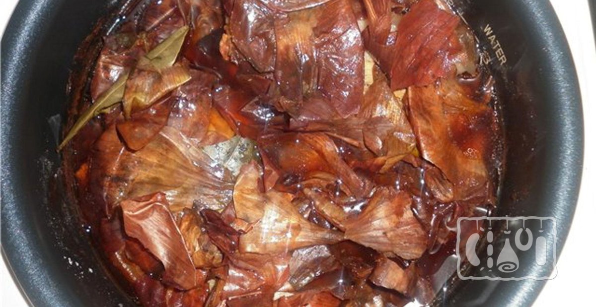 Варёное сало в луковой шелухе