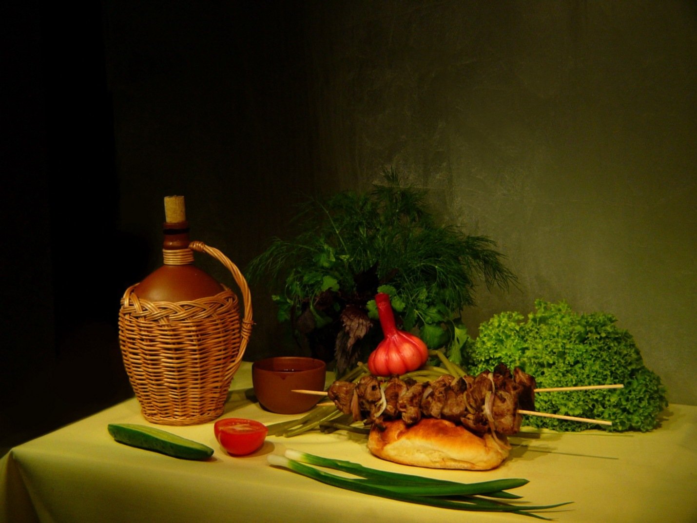 Накрытый стол с едой в древности