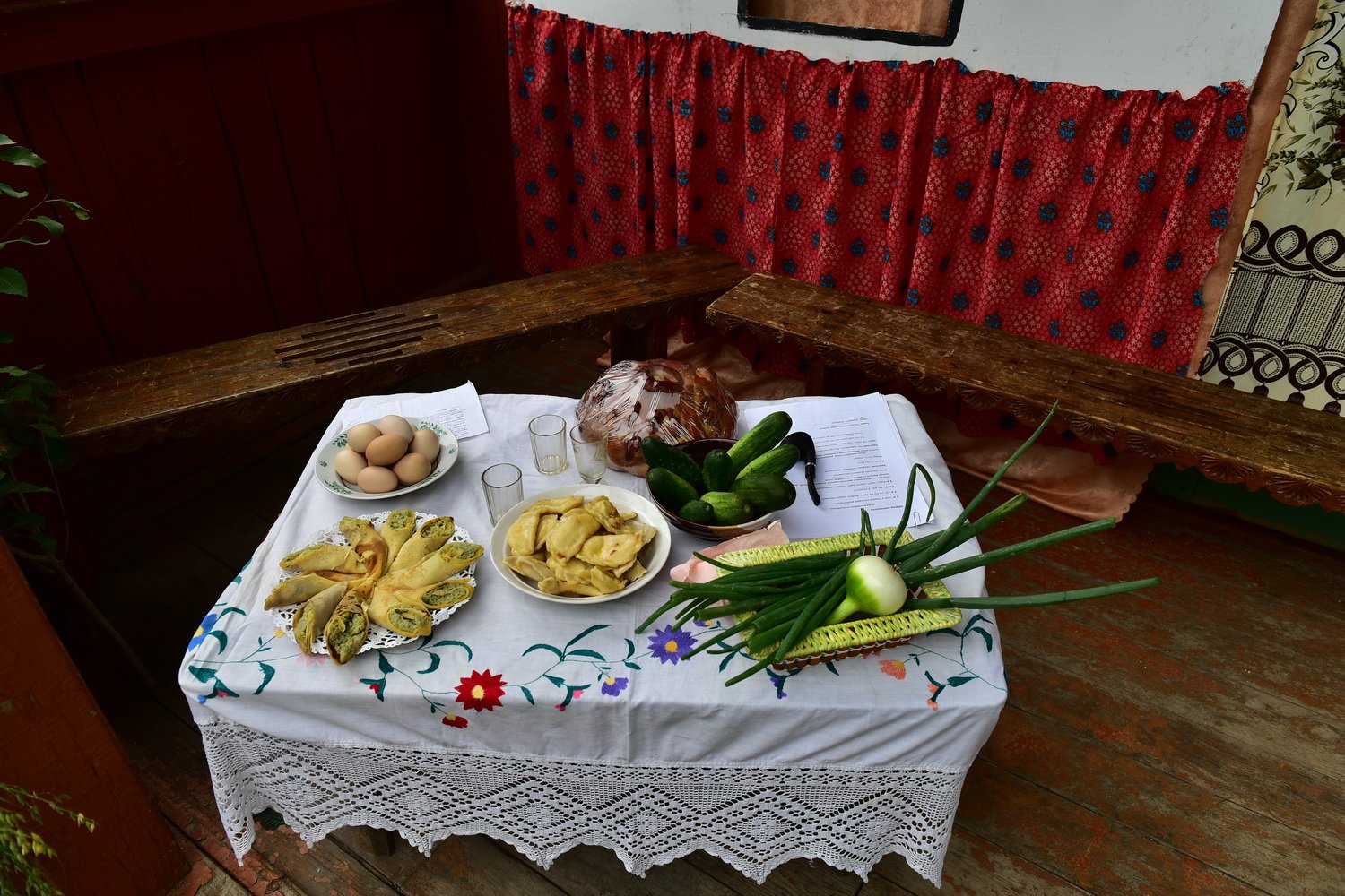 Деревенский стол с едой