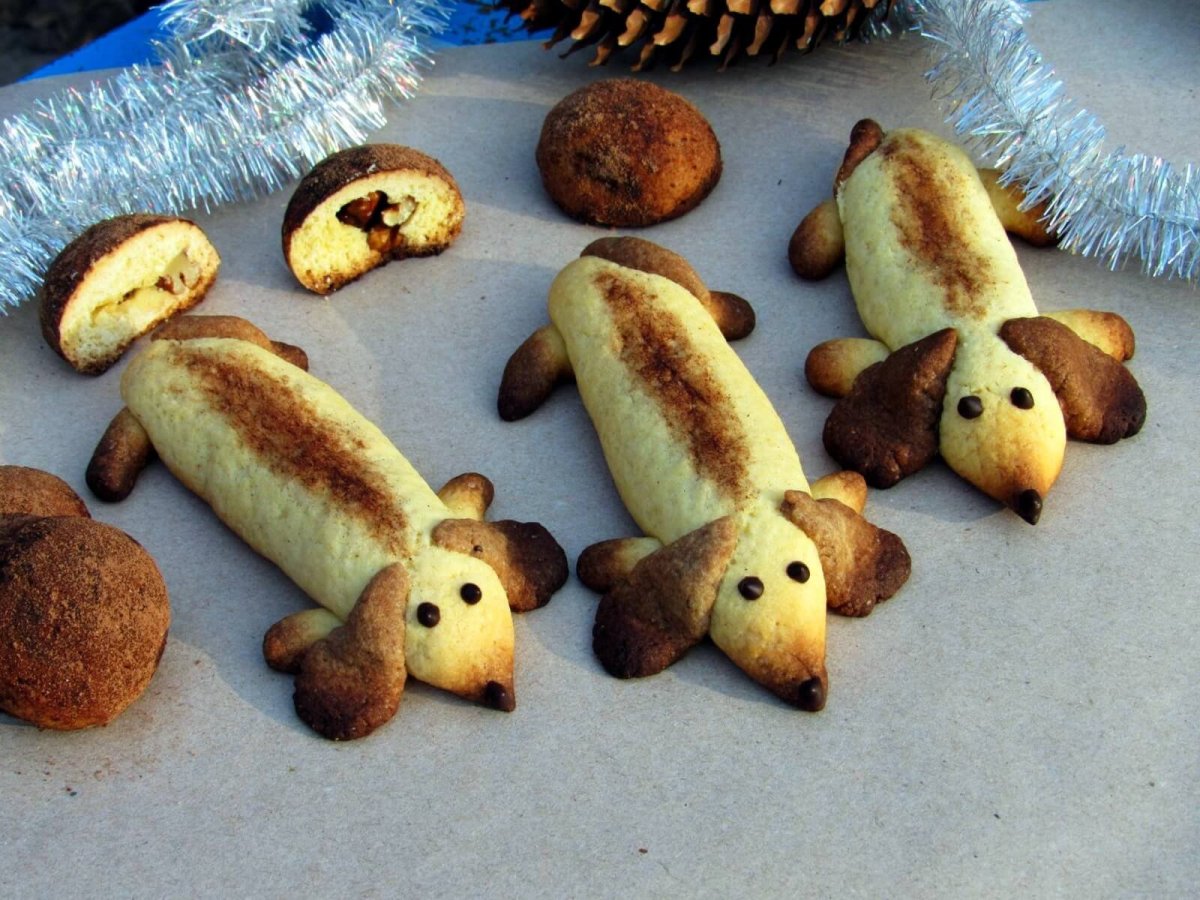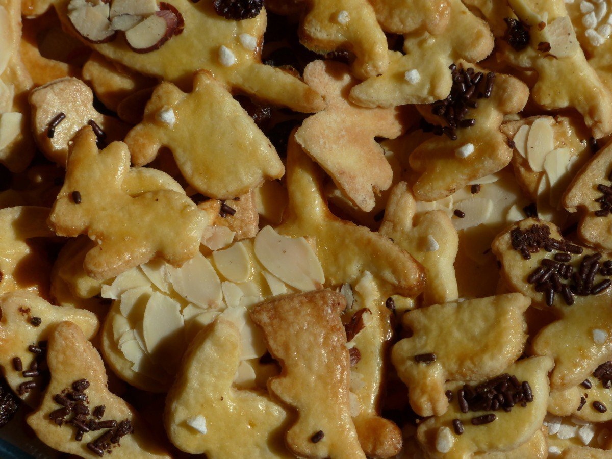 Бисквитное печенье с изюмом из жидкого теста нарезанное на противне