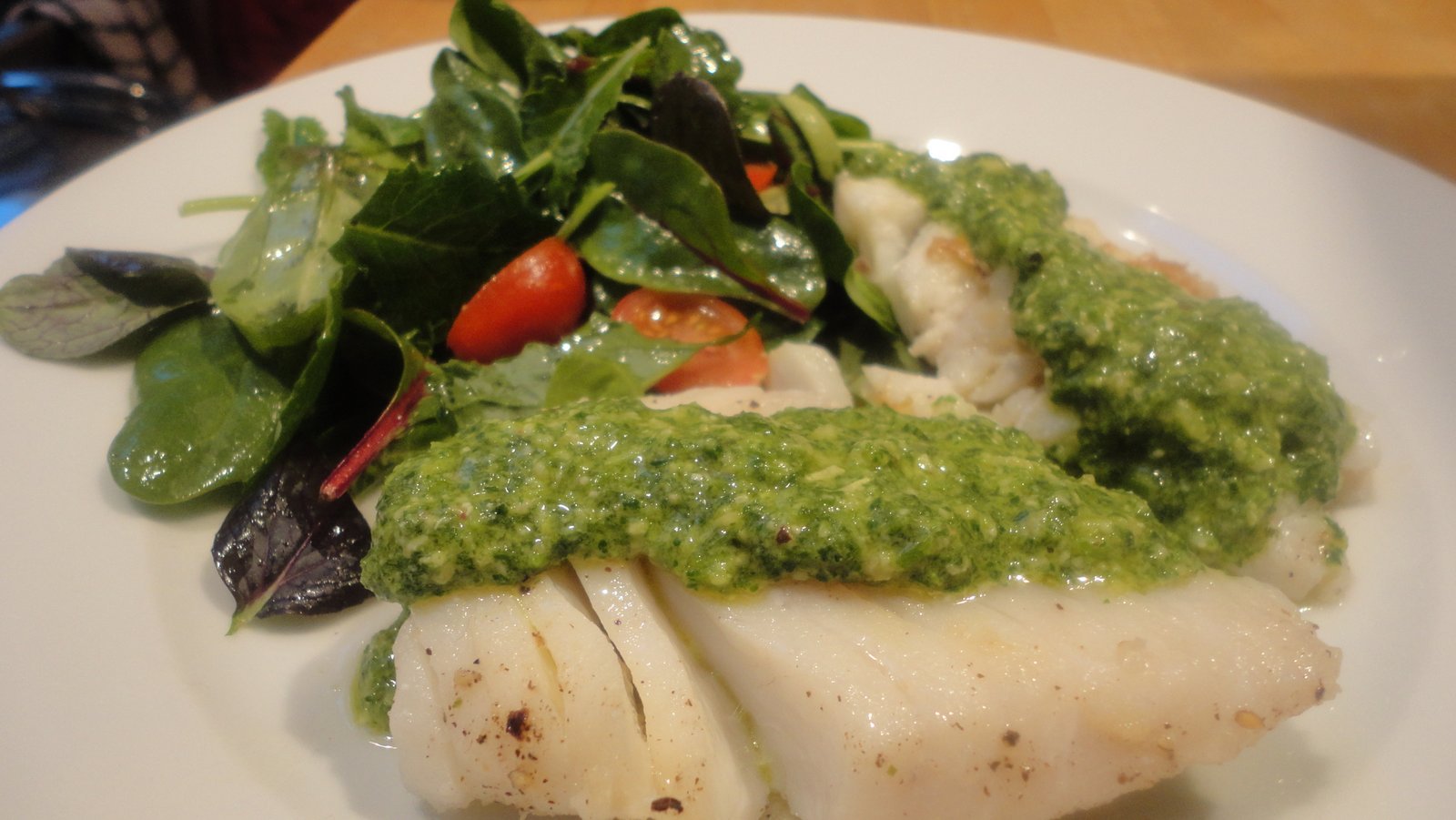 Палтус запеченный с соусом песто