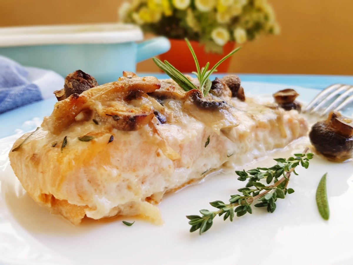 Судак с грибами