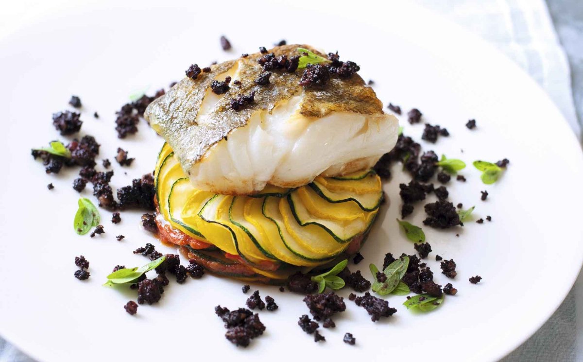 Судак с овощным рататуем
