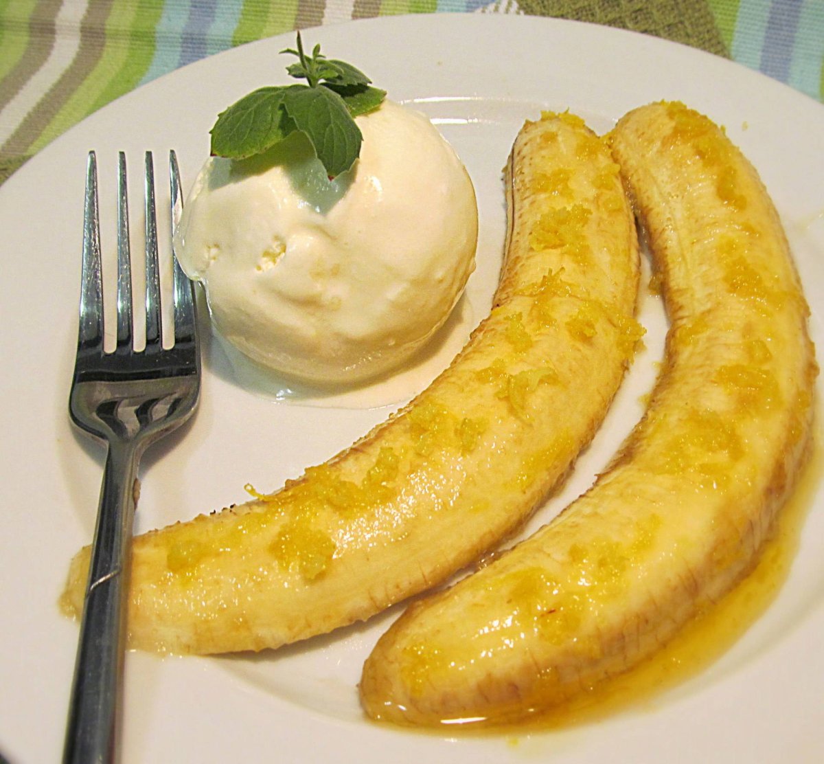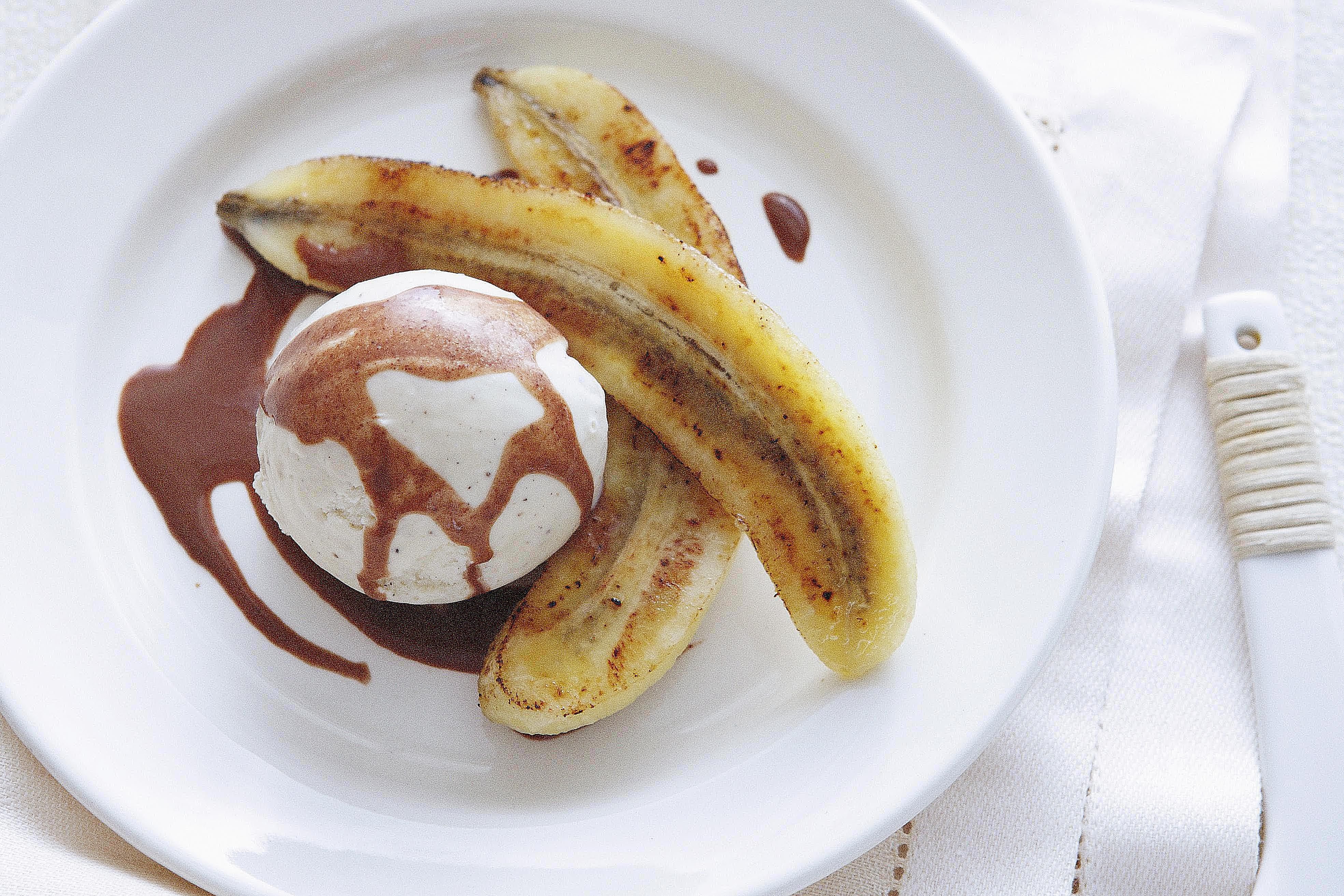 Банан в карамели с мороженым