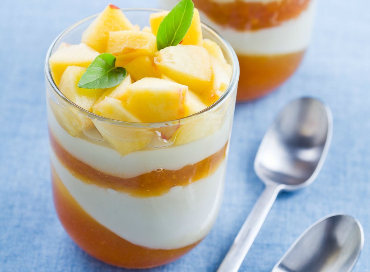 Десерт в стакане с бананом