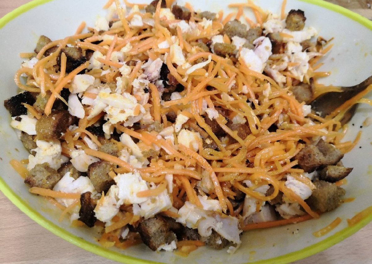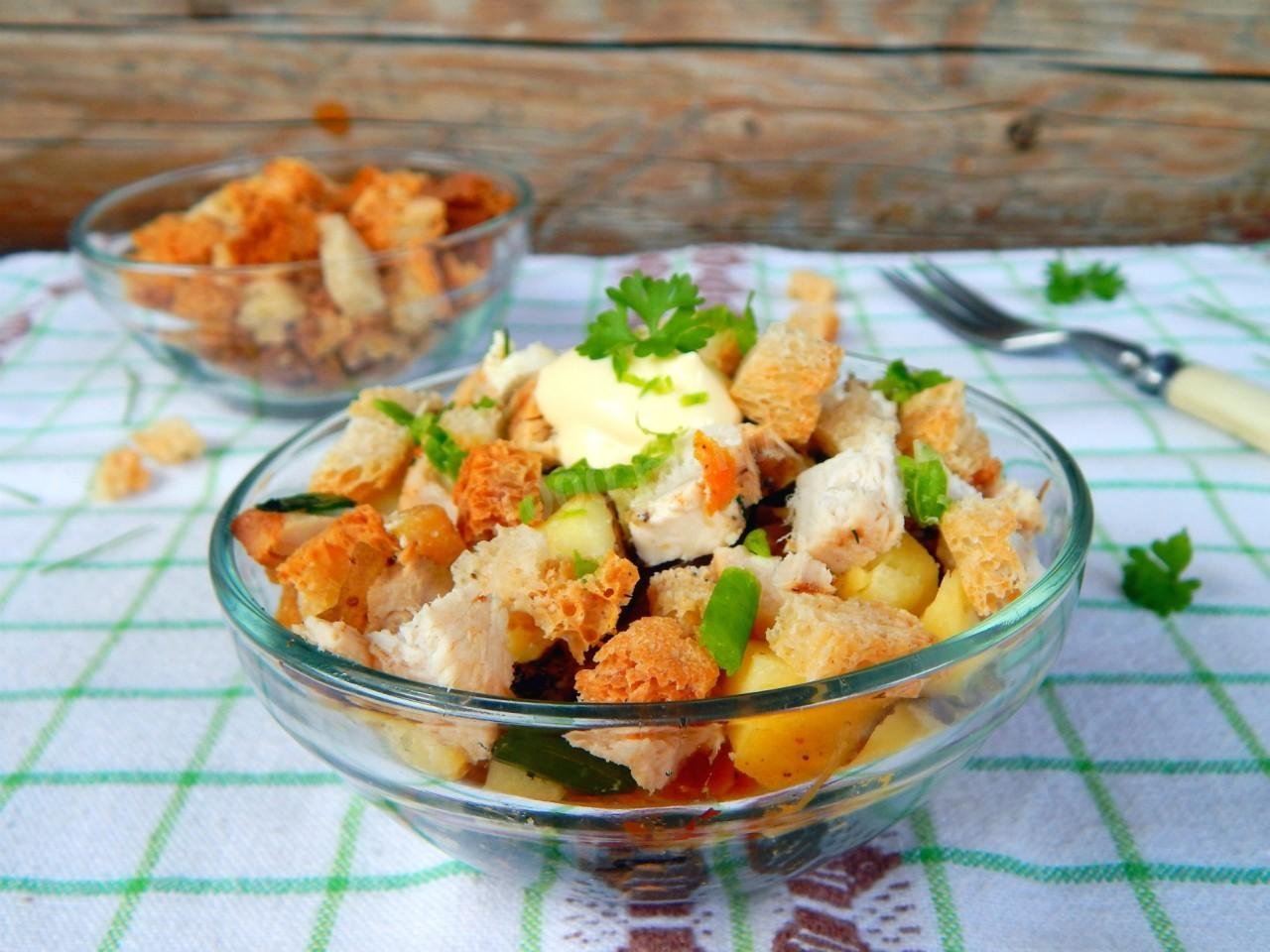 Салат с курицей и пекинской капустой и сухариками