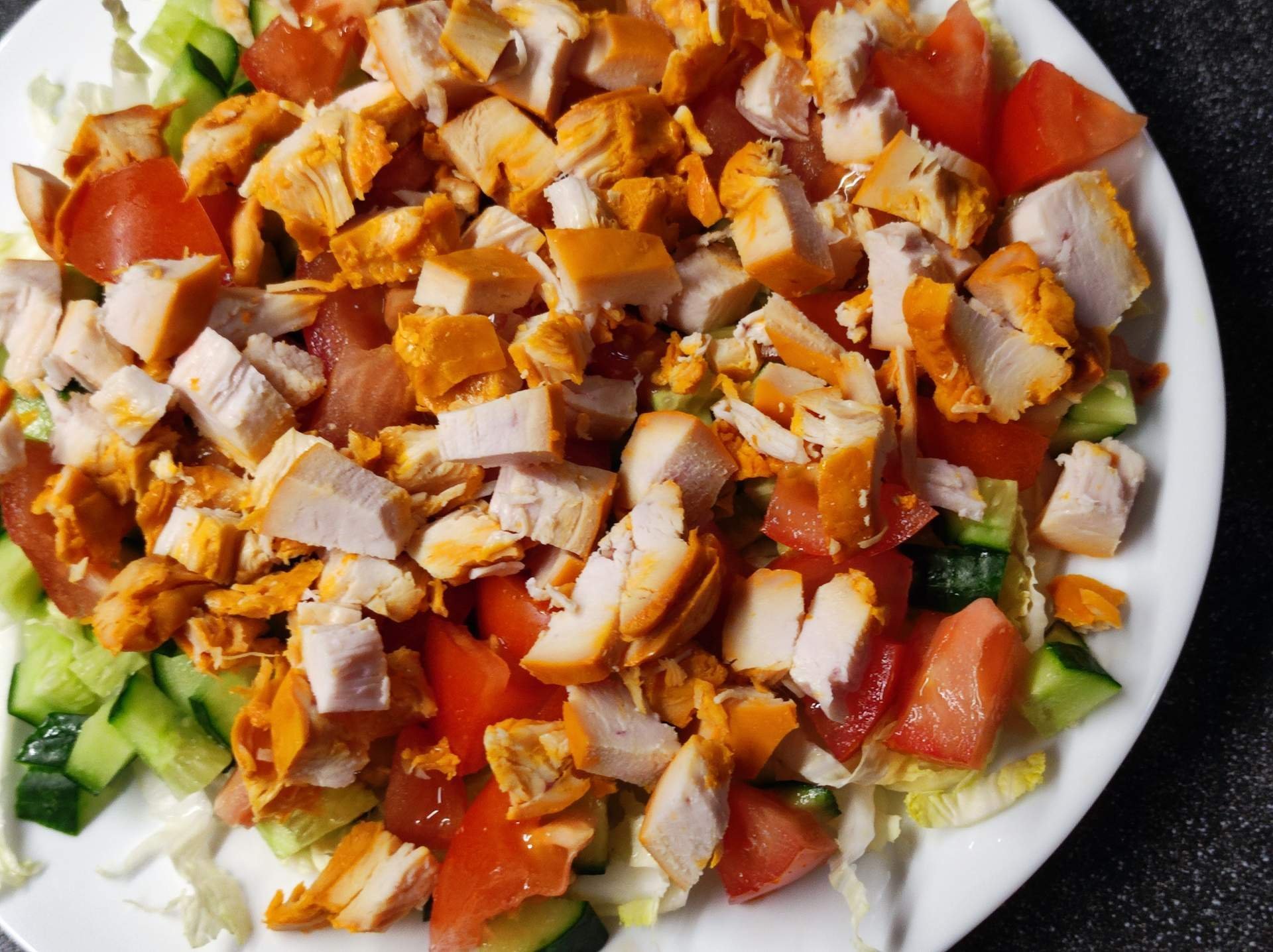Быстрый салат с копченой курицей