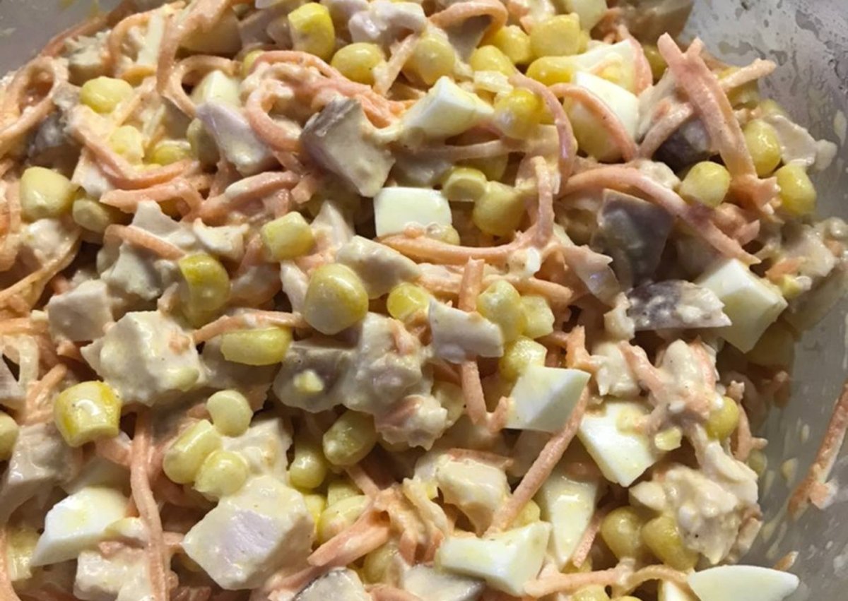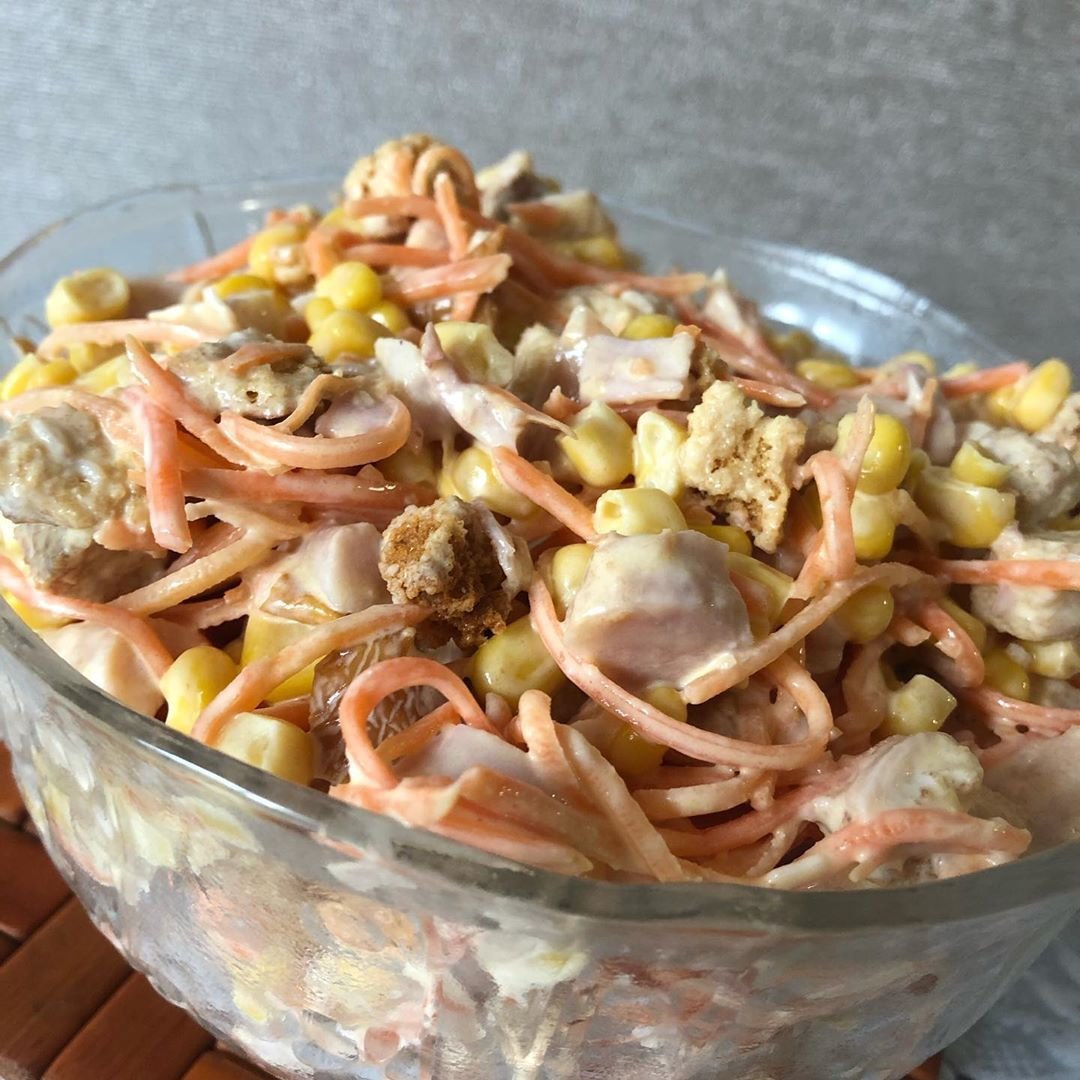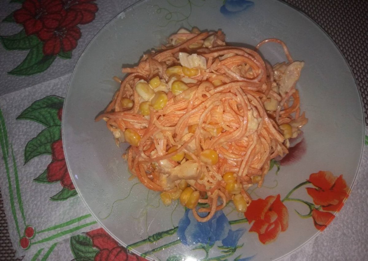 Салат с корейской морковью и курицей и кукурузой
