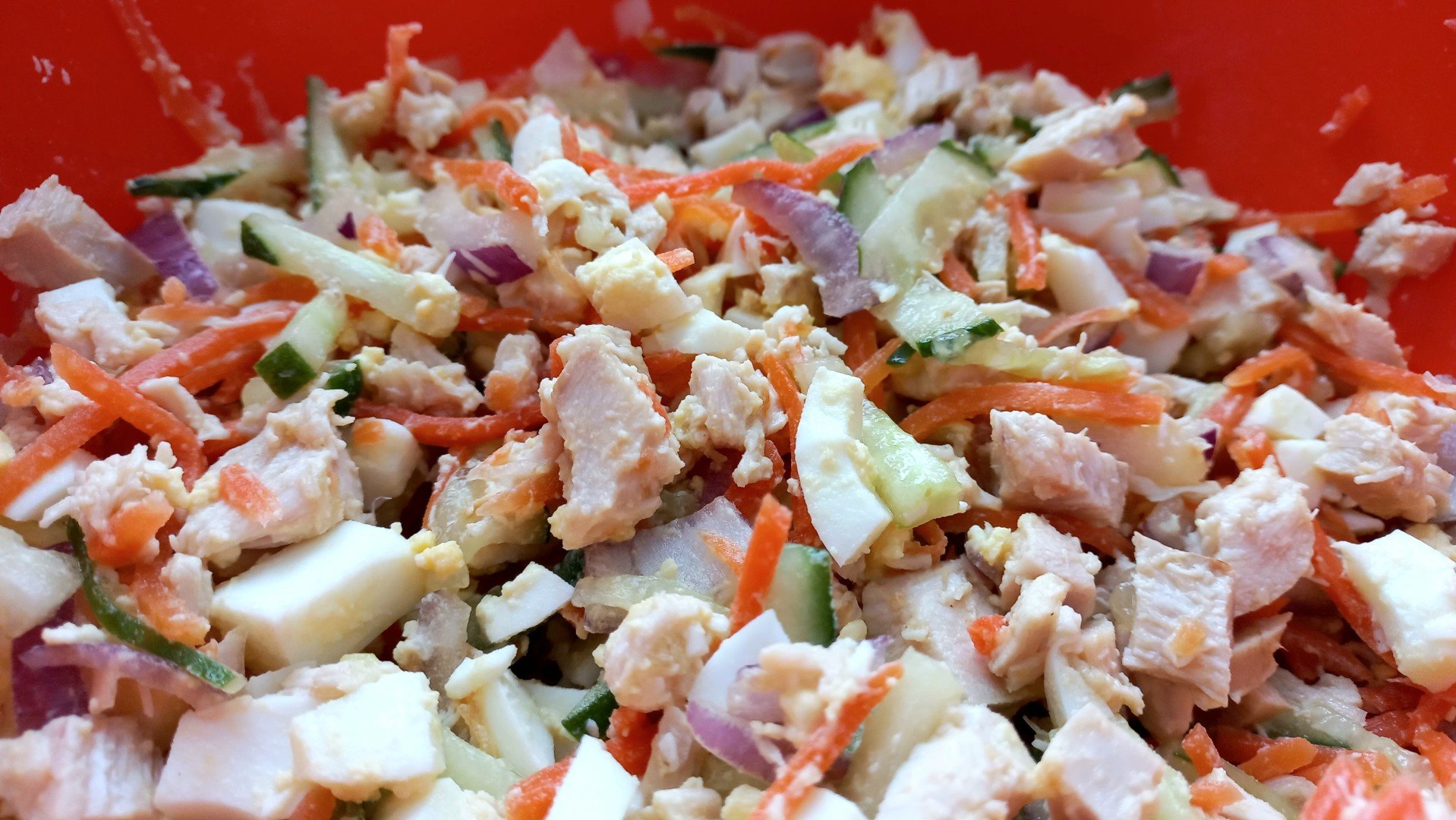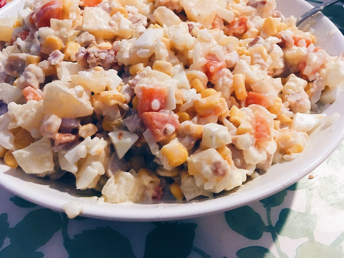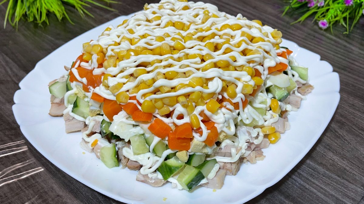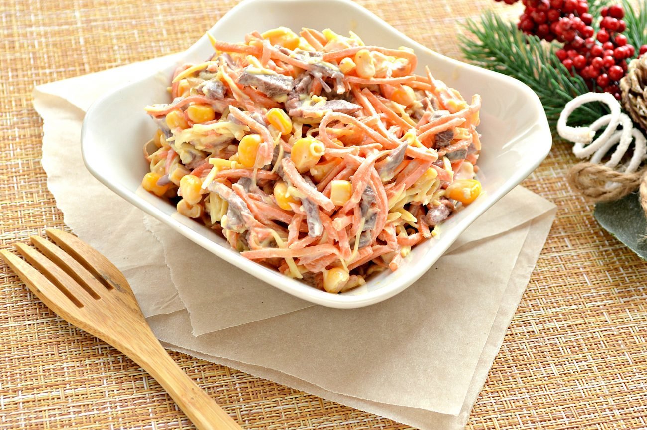 Салат с корейской морковью и курицей и кукурузой