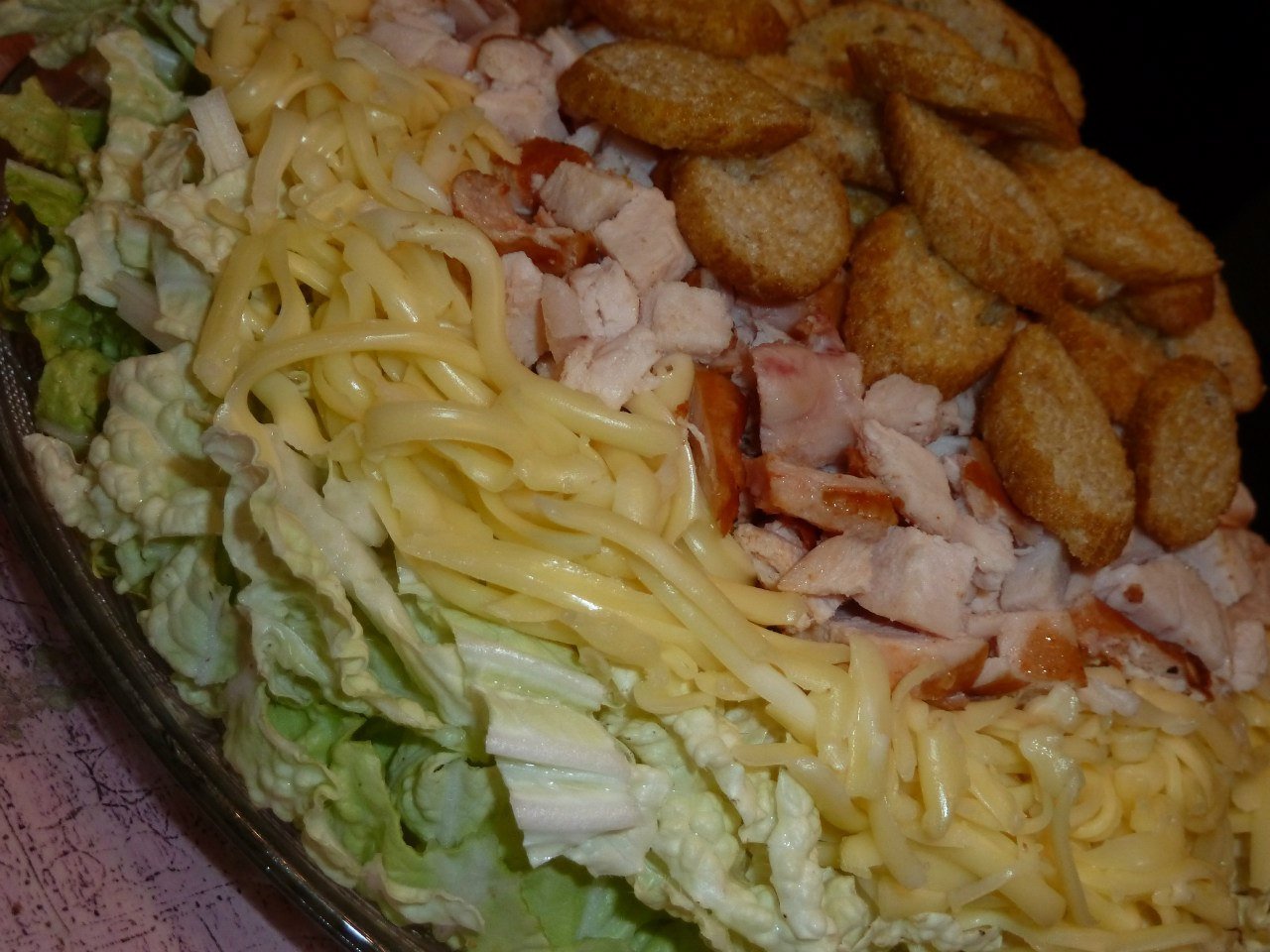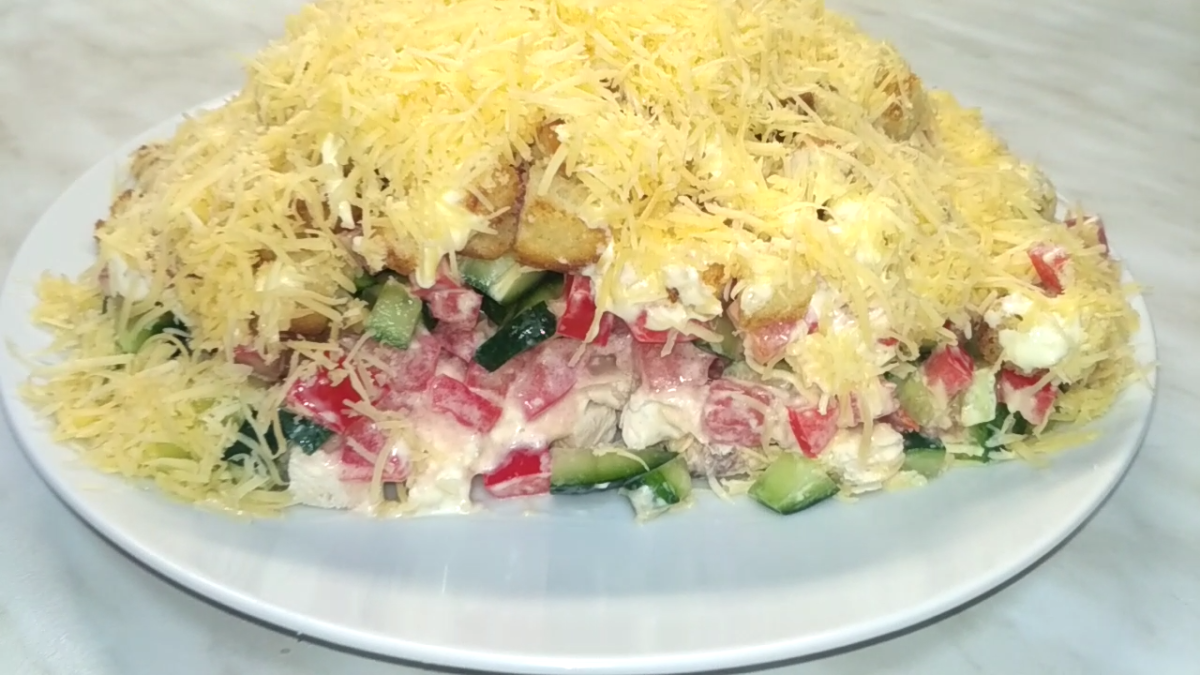 Слоеный овощной салат с курицей