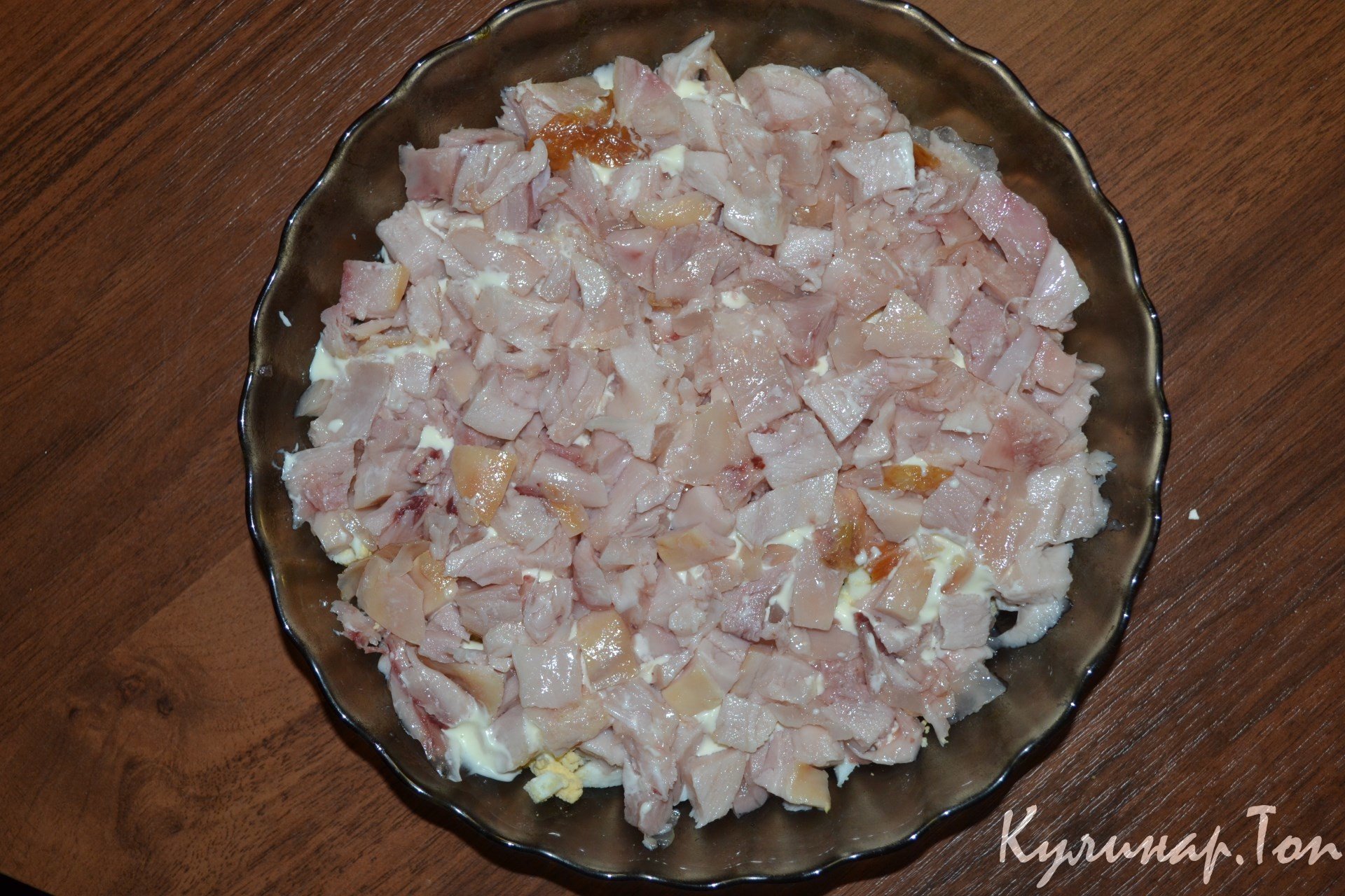 Салат из копченой курицы слоеный