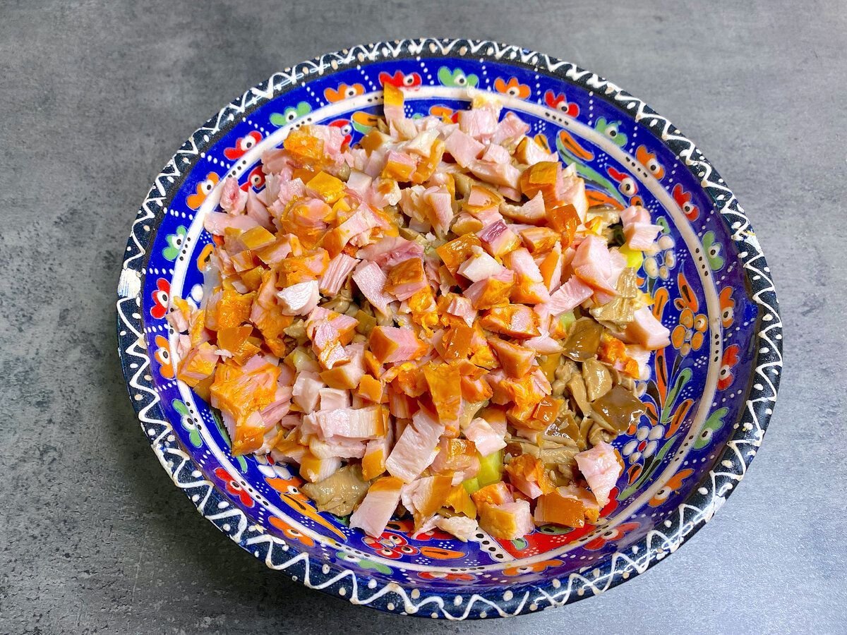 Салат Парижель с копченой курицей и грибами