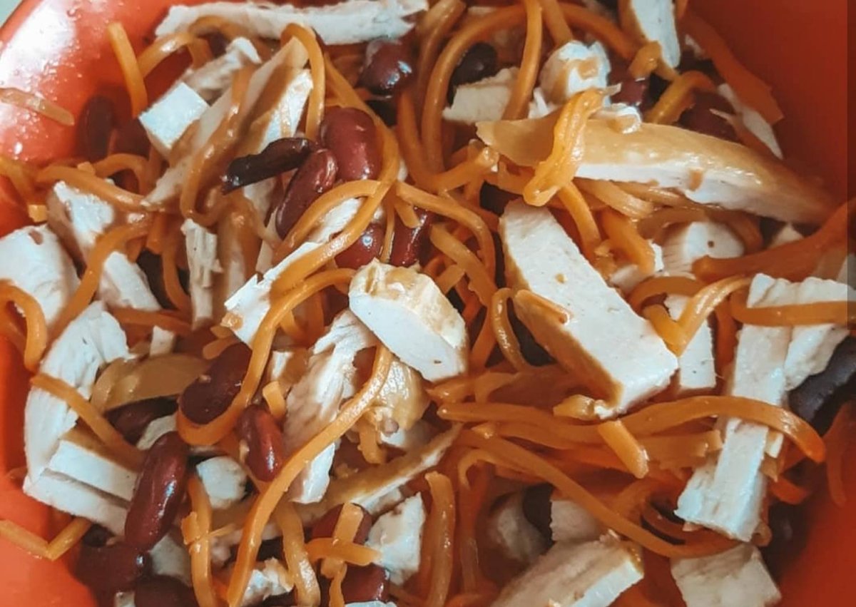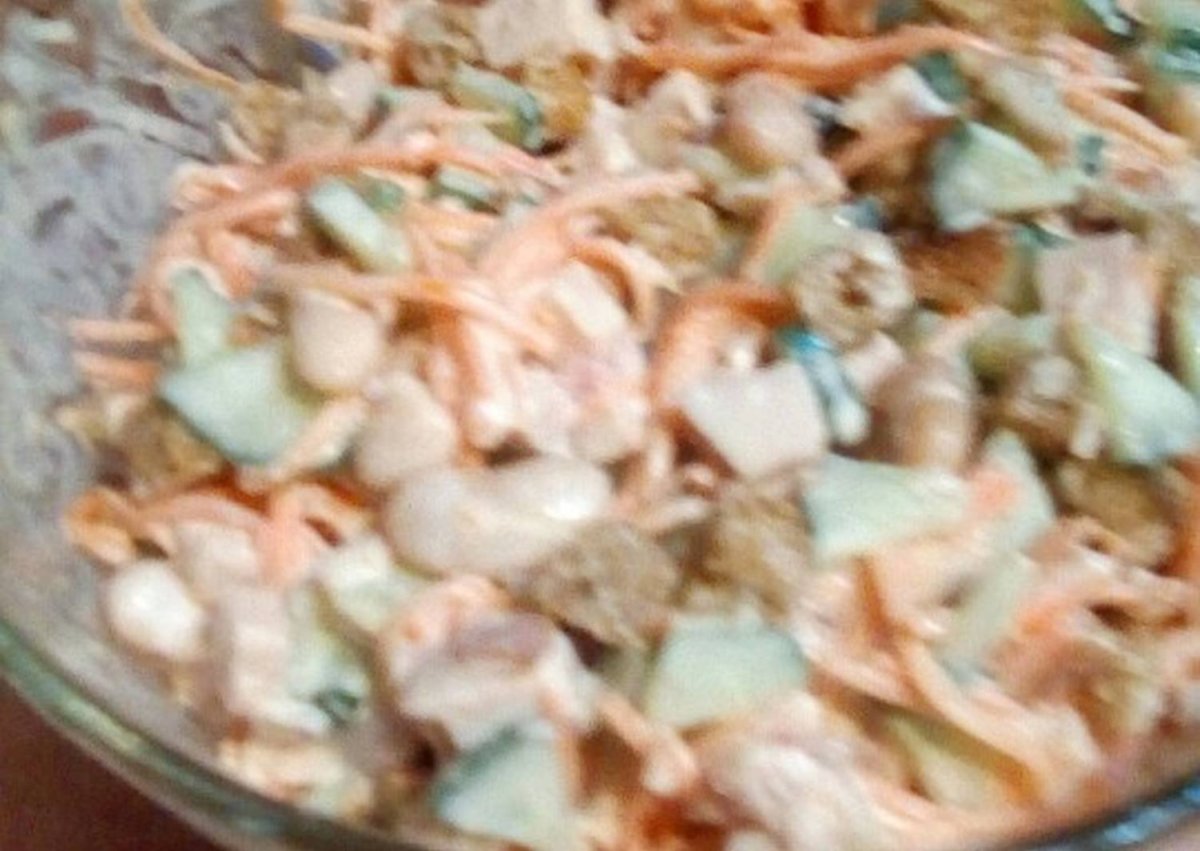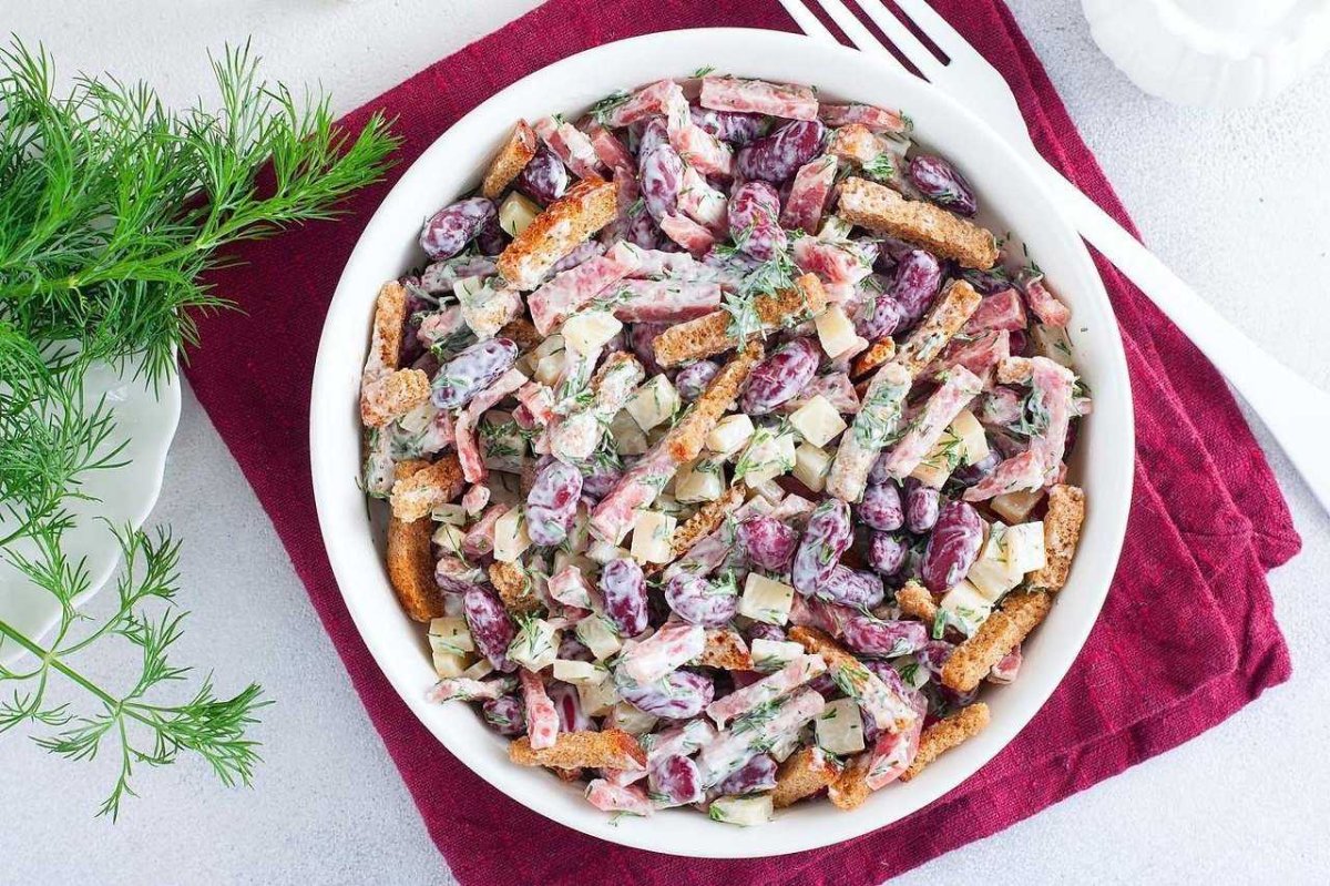 Салат с копчёной курицей и корейской морковью и фасолью