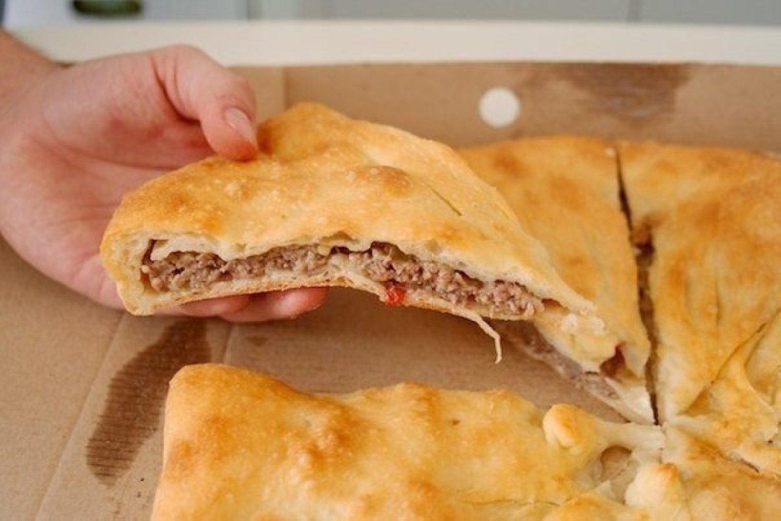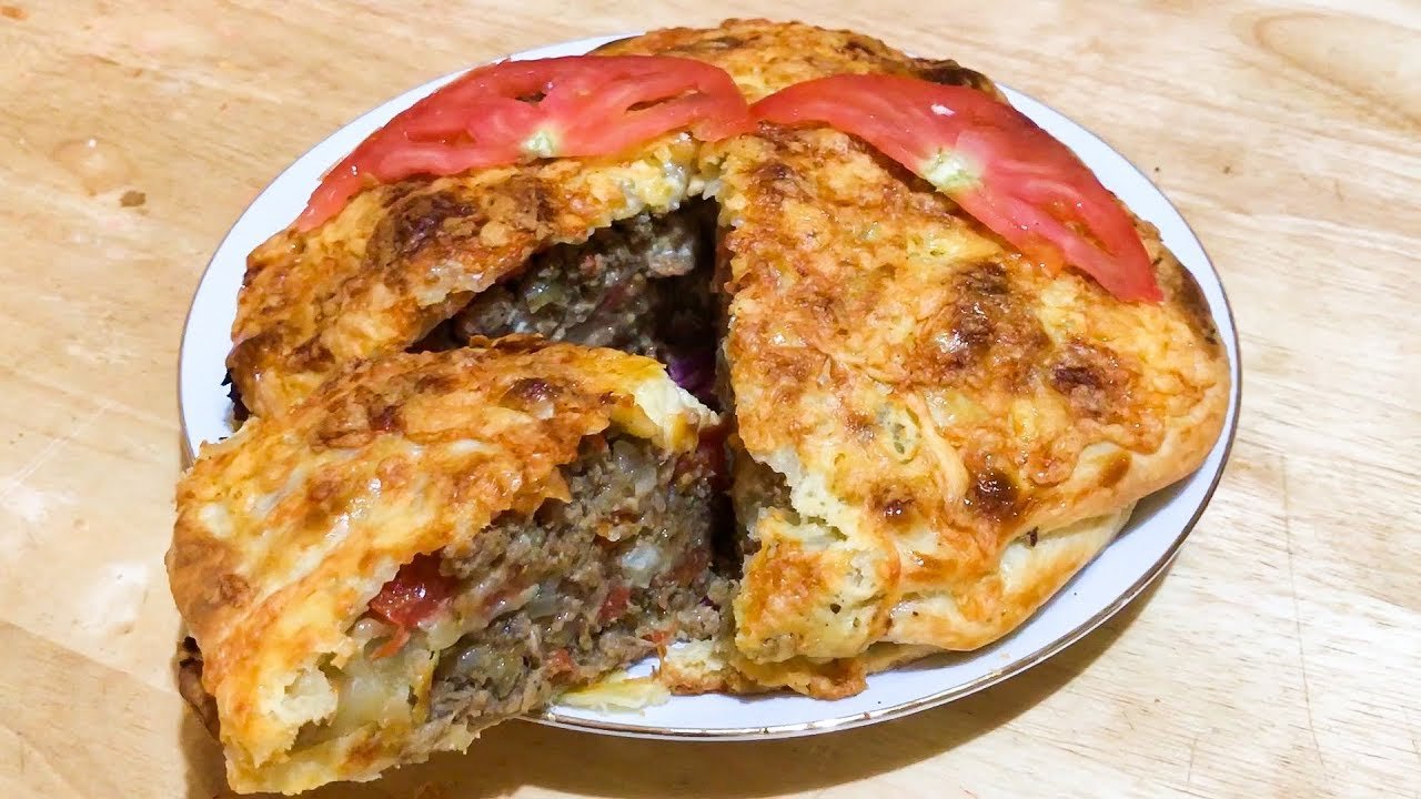 Тонкий пирог с мясом