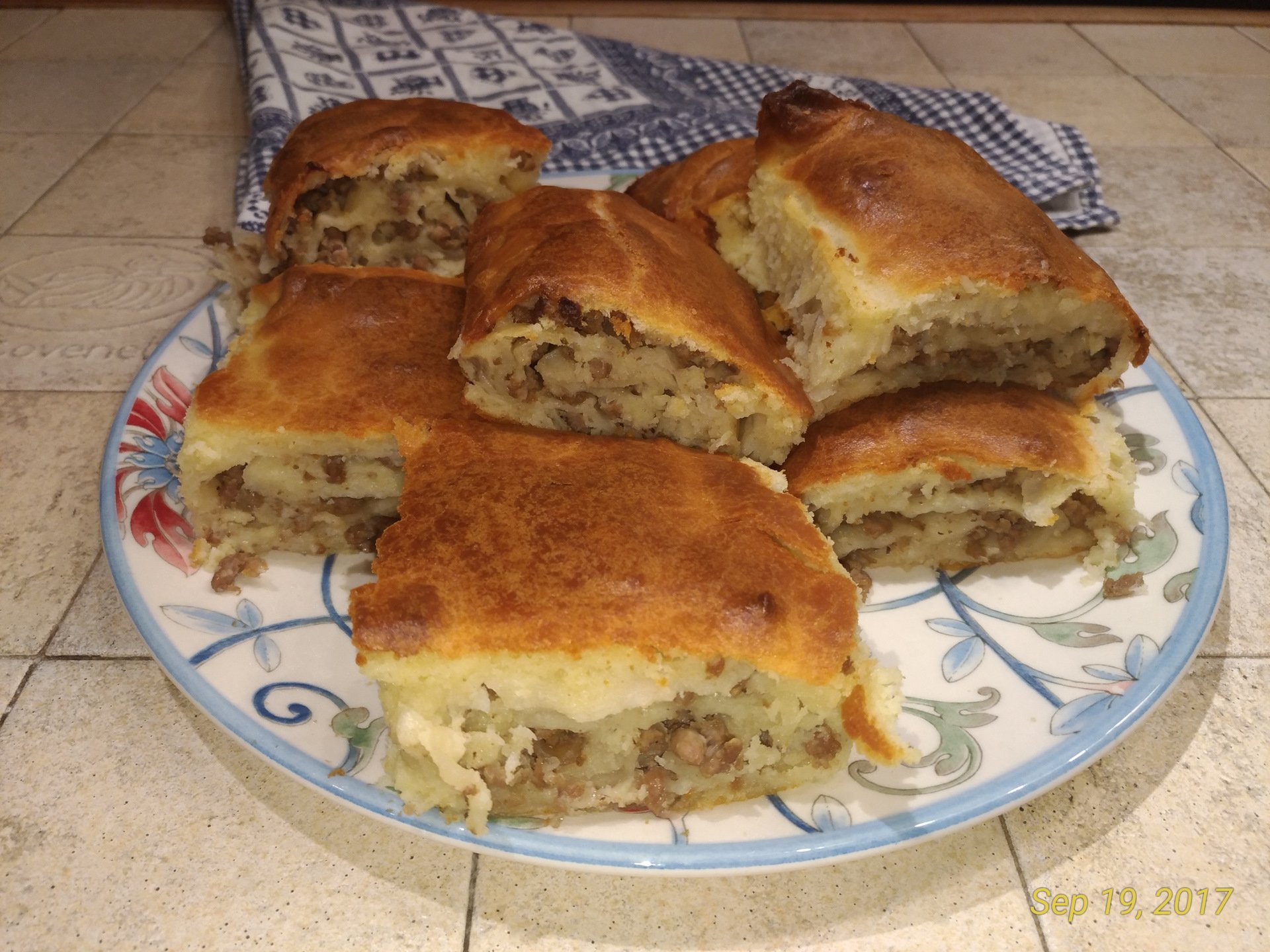 Пирог мясной слоеный