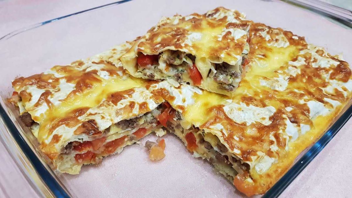 Пирог из лаваша с фаршем и сыром