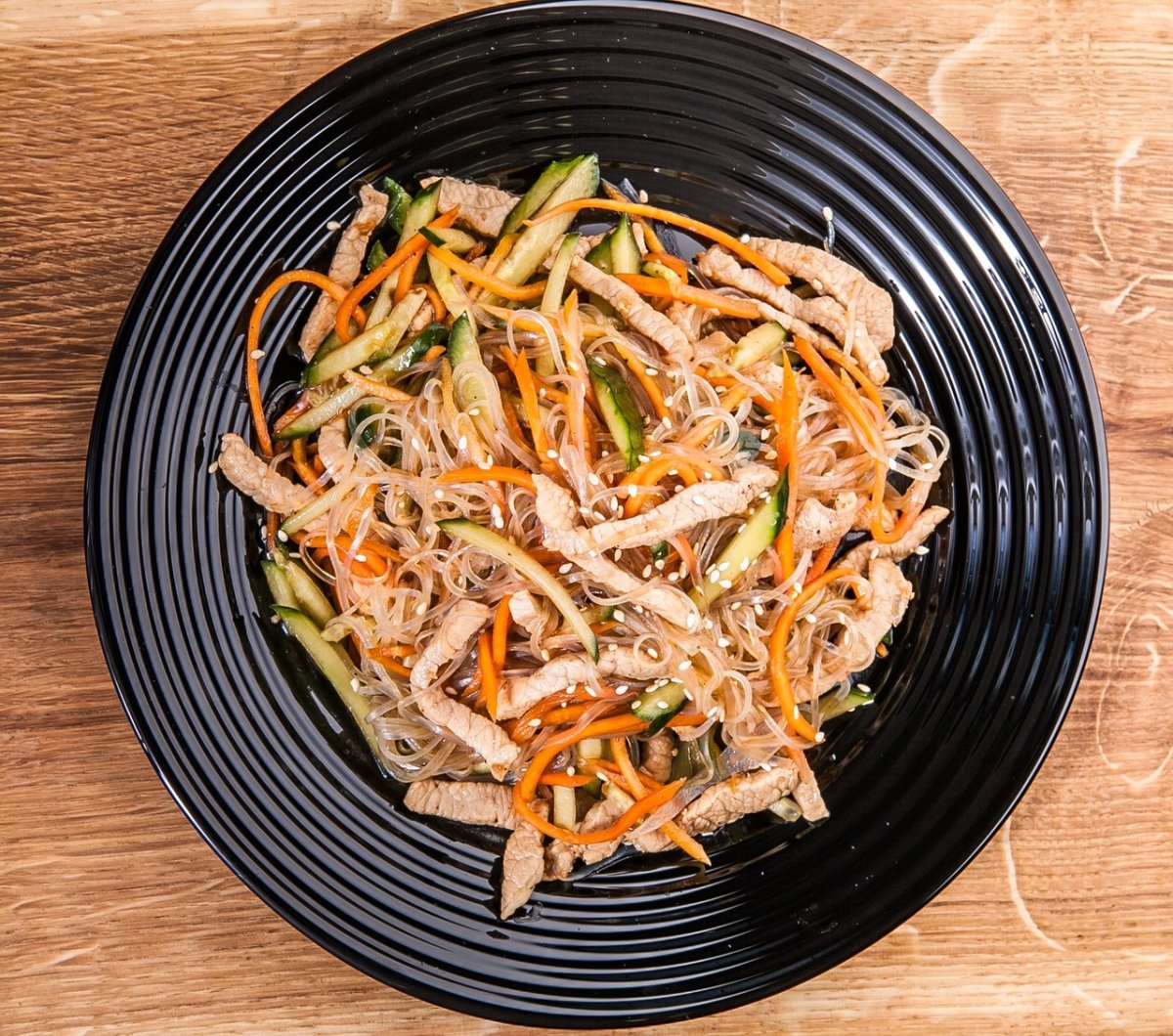 Салат с рисовой лапшой фунчоза