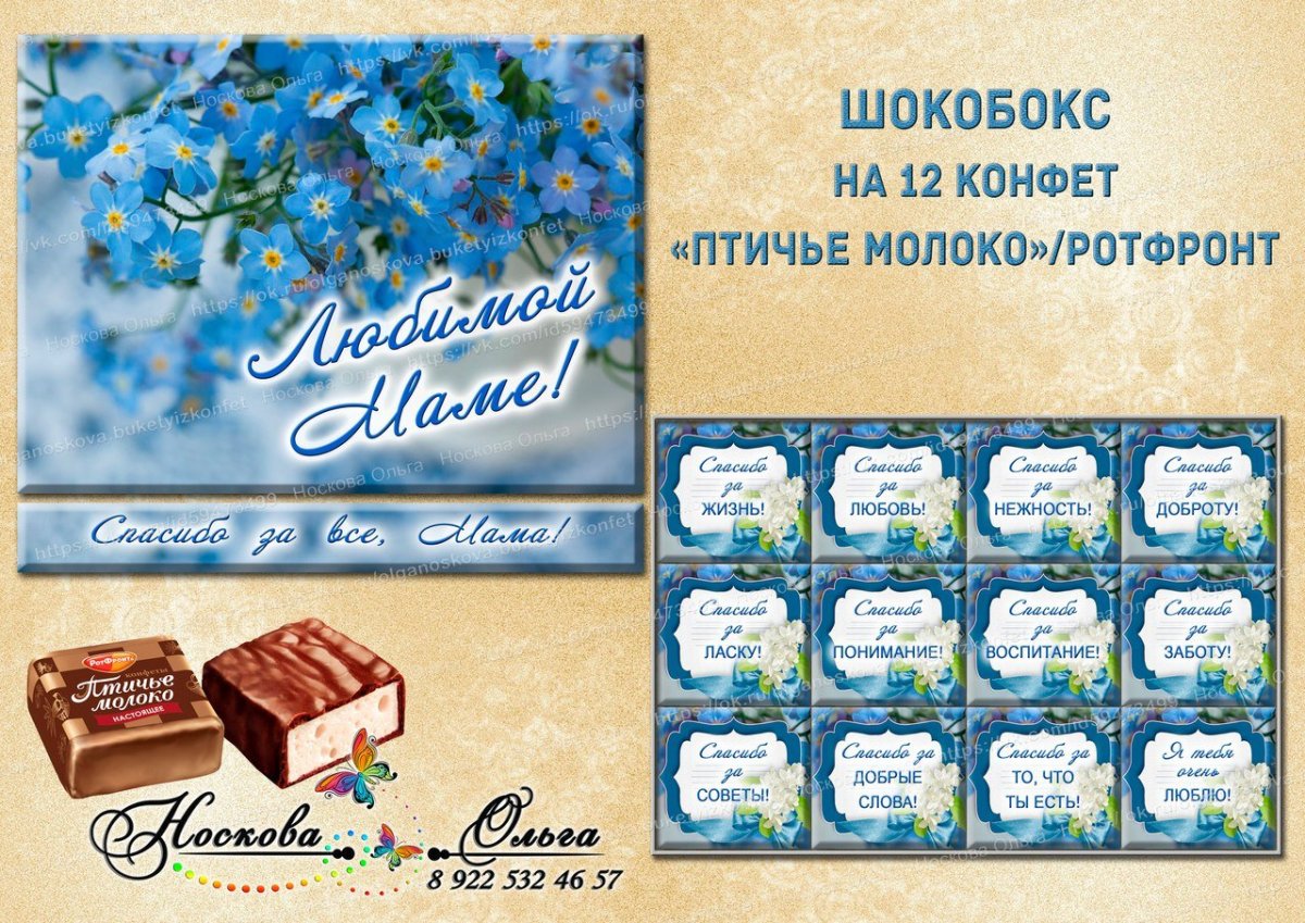 Обертка на конфеты Птичье молоко