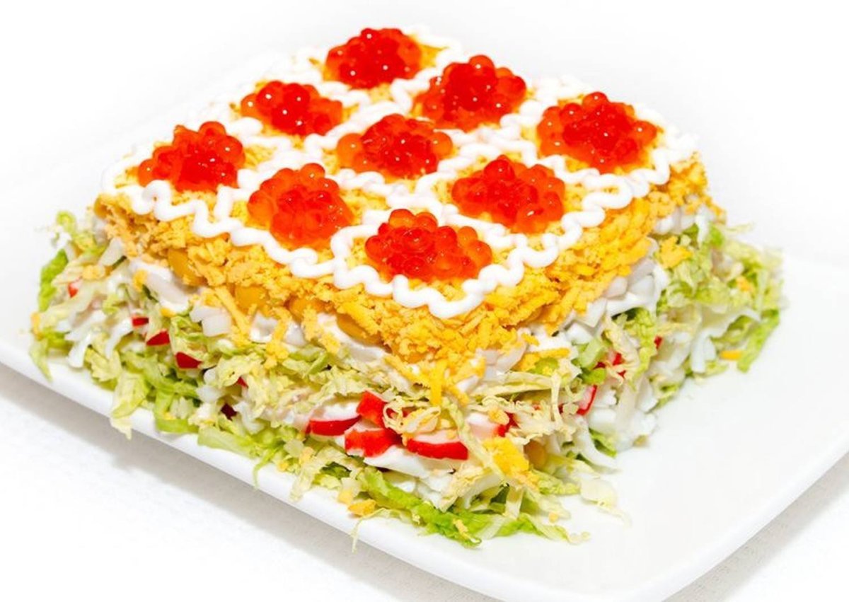 Слоеный салат с икрой