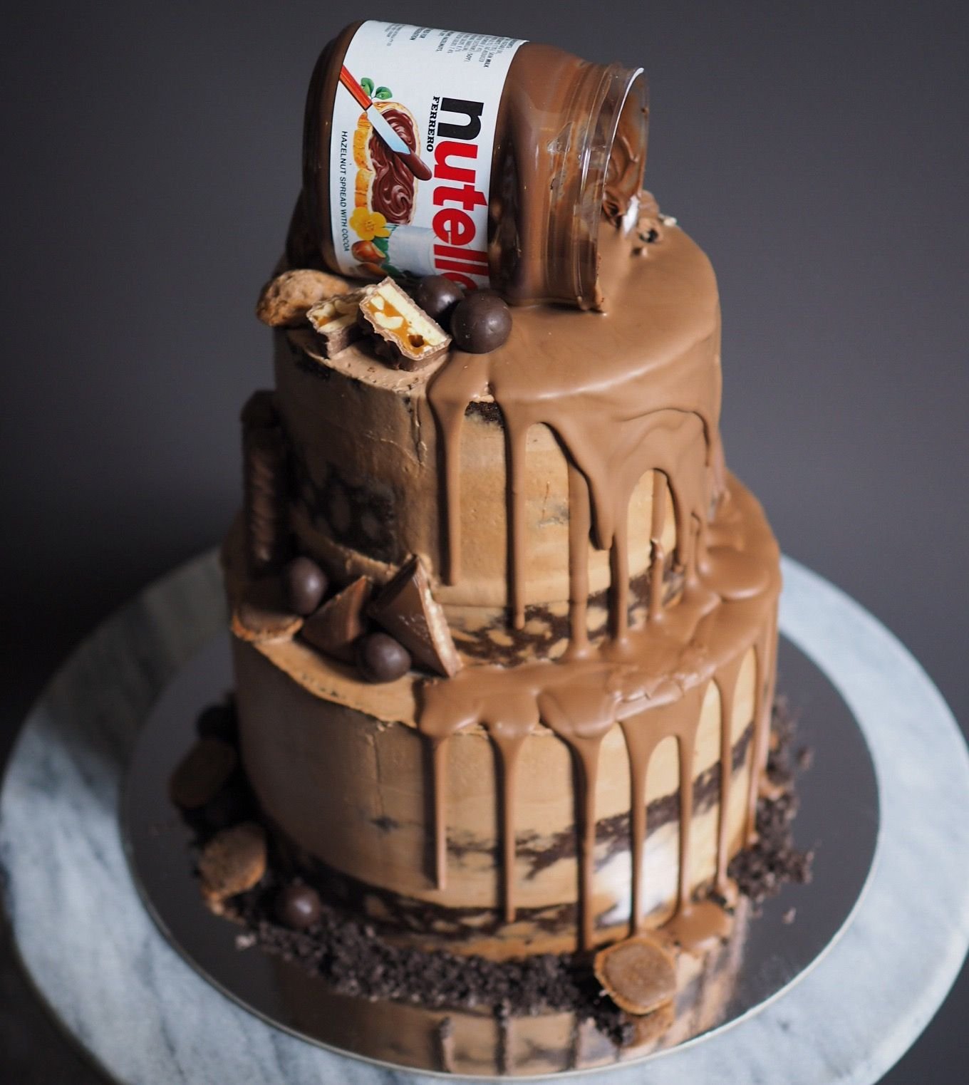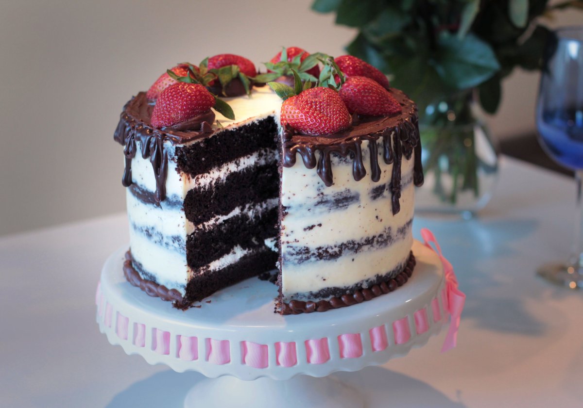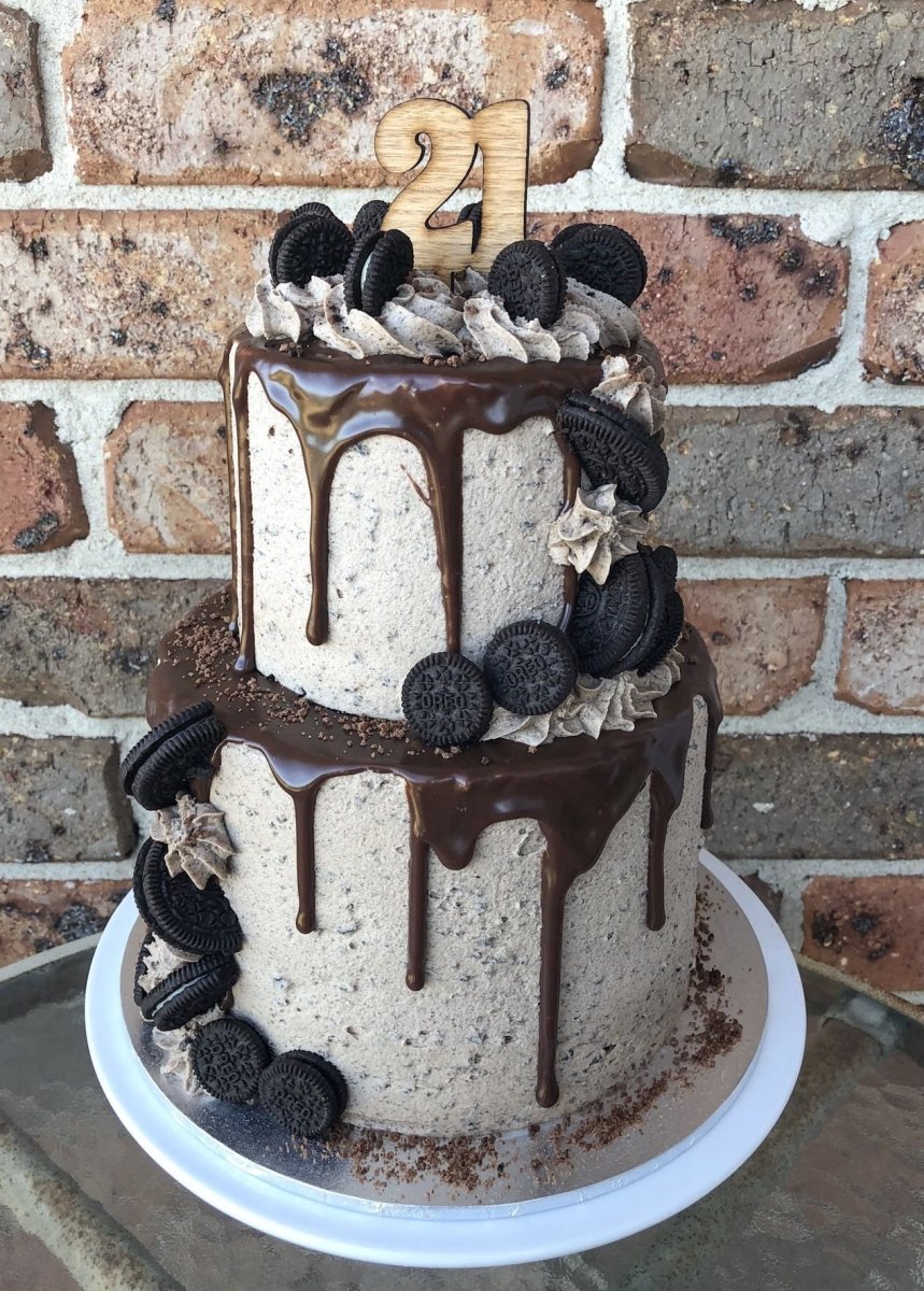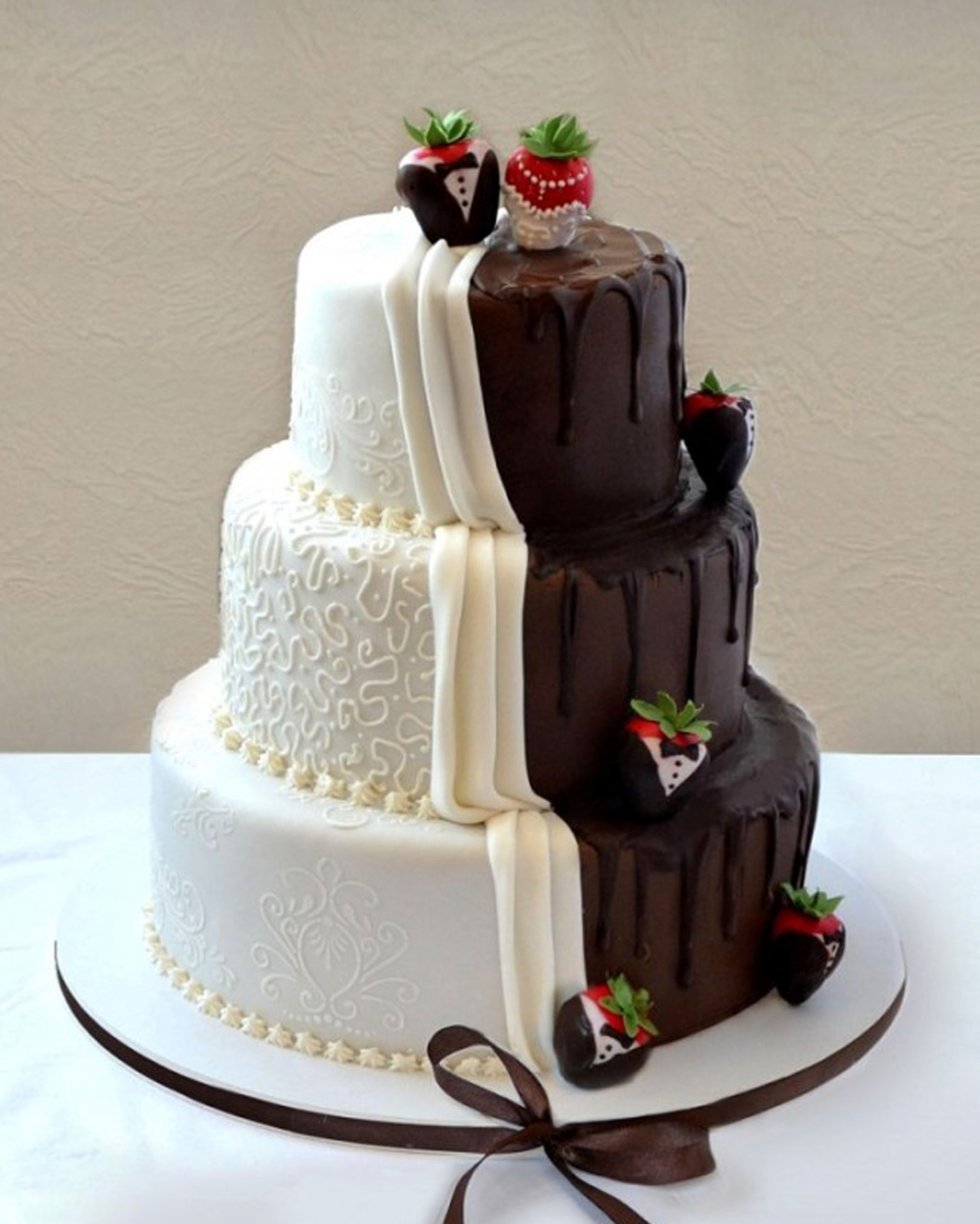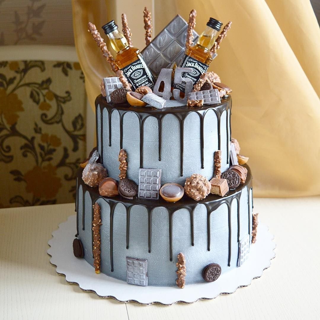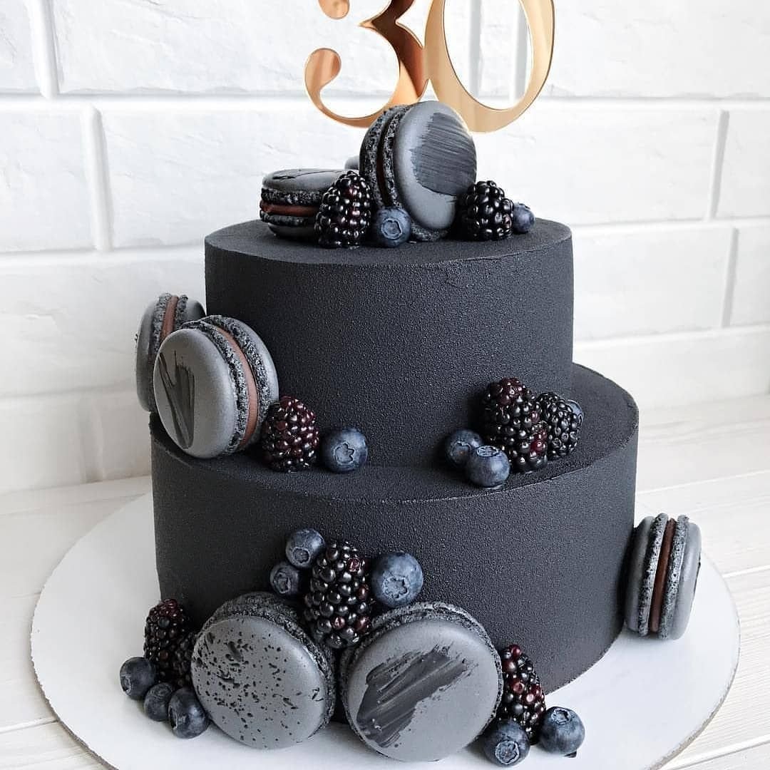 2 Ярусный торт с ягодами и шоколадными подтеками и фруктами
