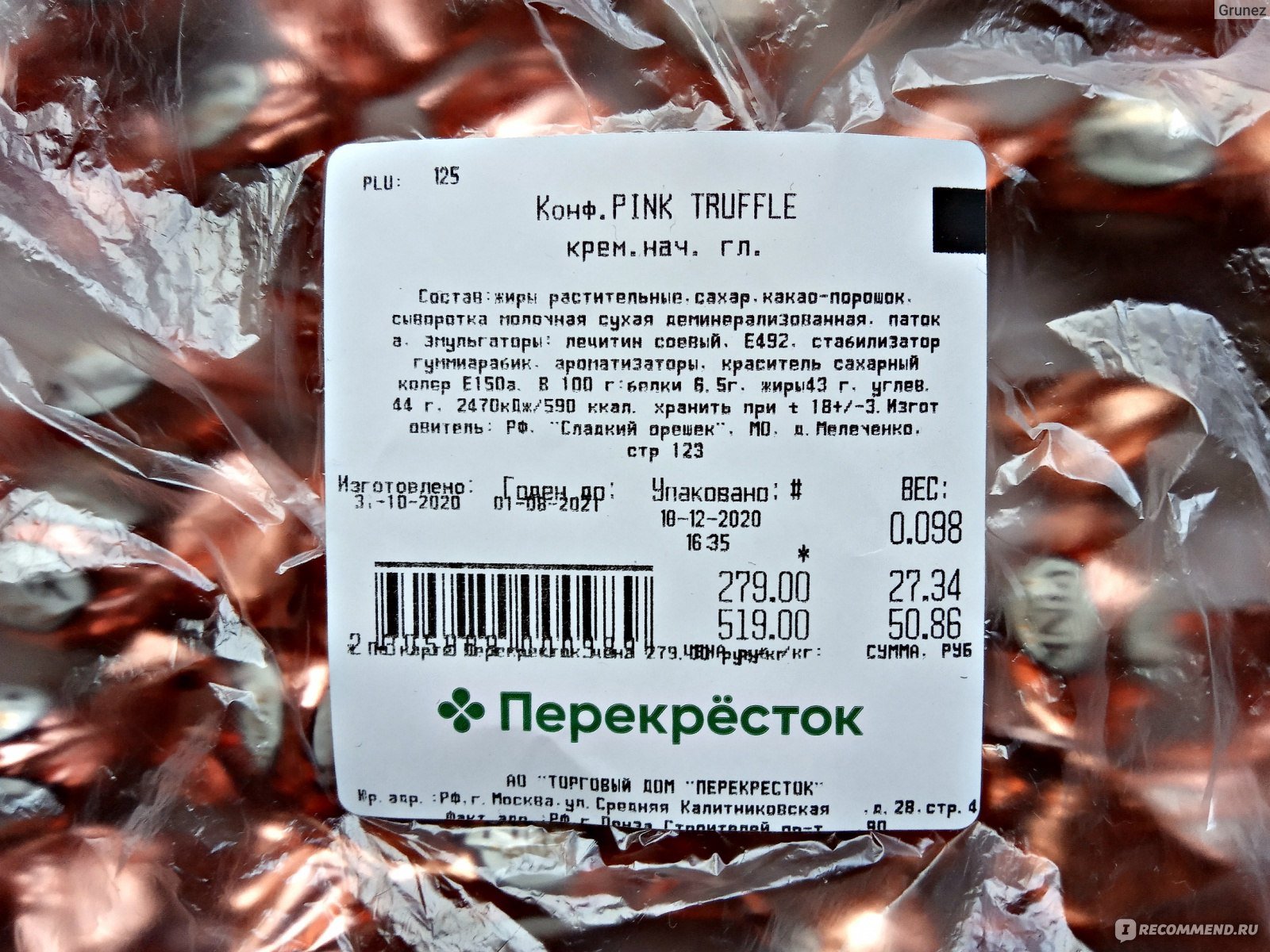 Конфета трюфель калорийность