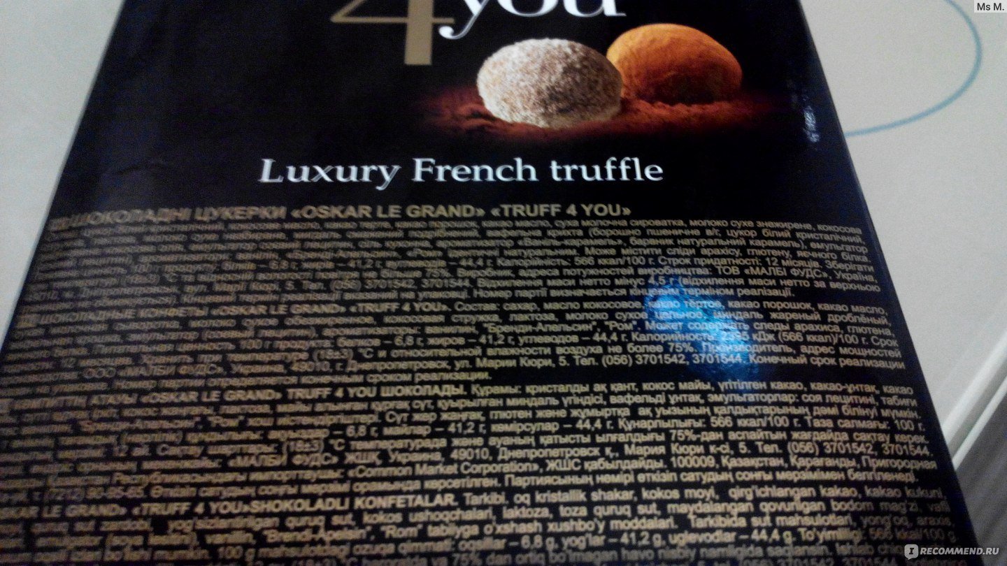Конфеты трюфель состав
