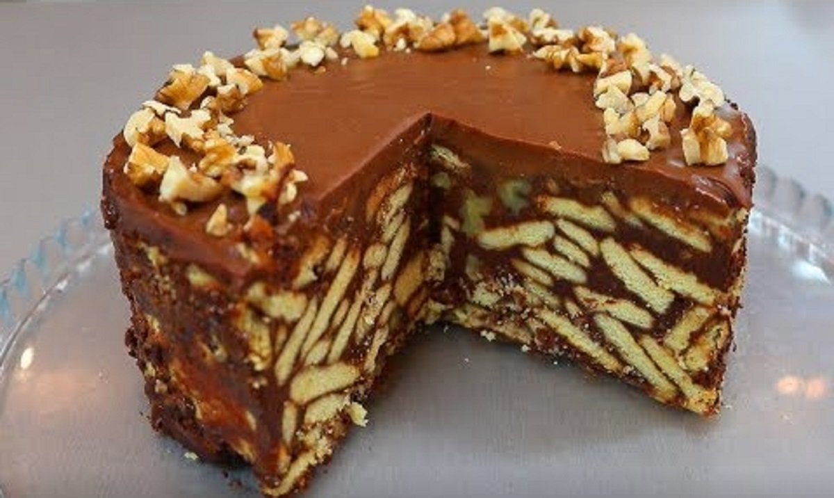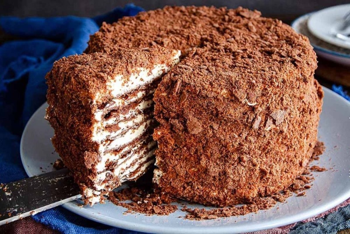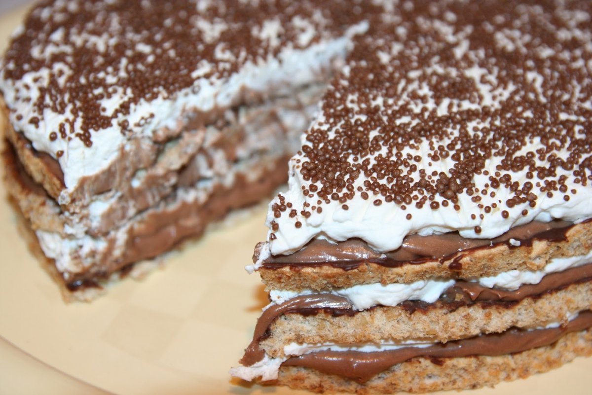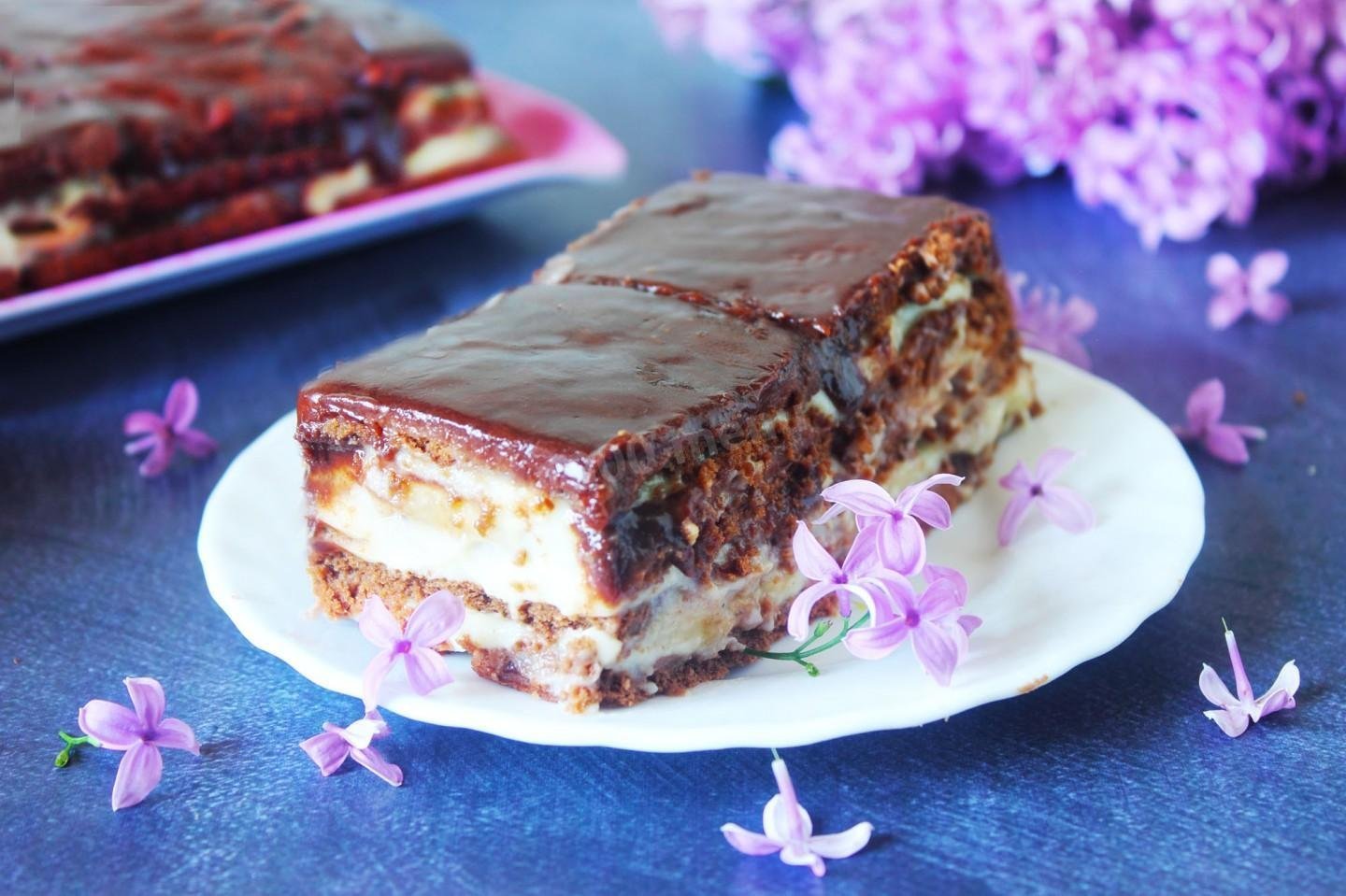 Торт из печенья без выпечки с заварным кремом