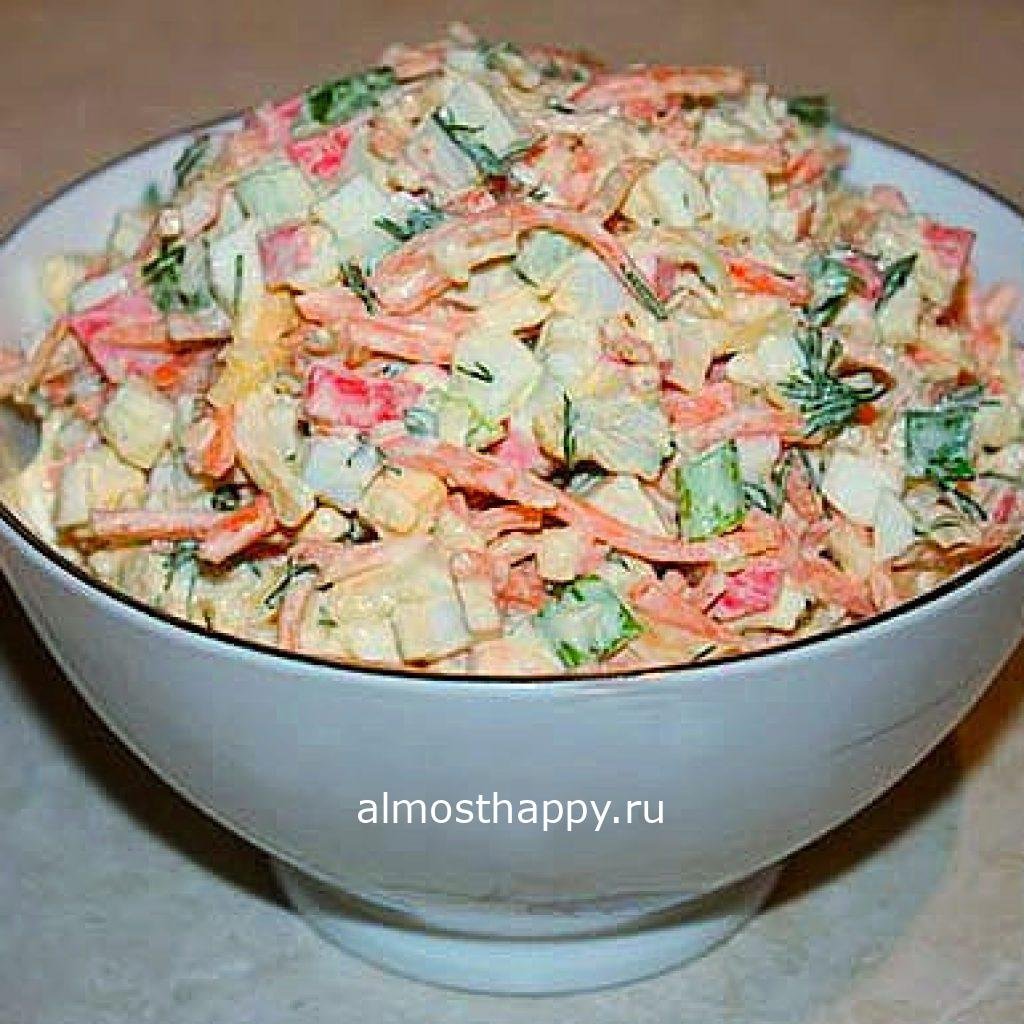 Салат с крабовыми палочками и корейской морковкой и кукурузой