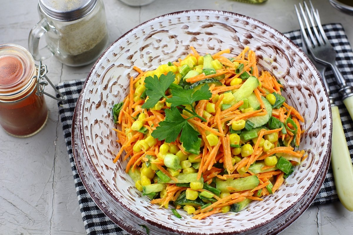 Салат с морковью по-корейски и кукурузой