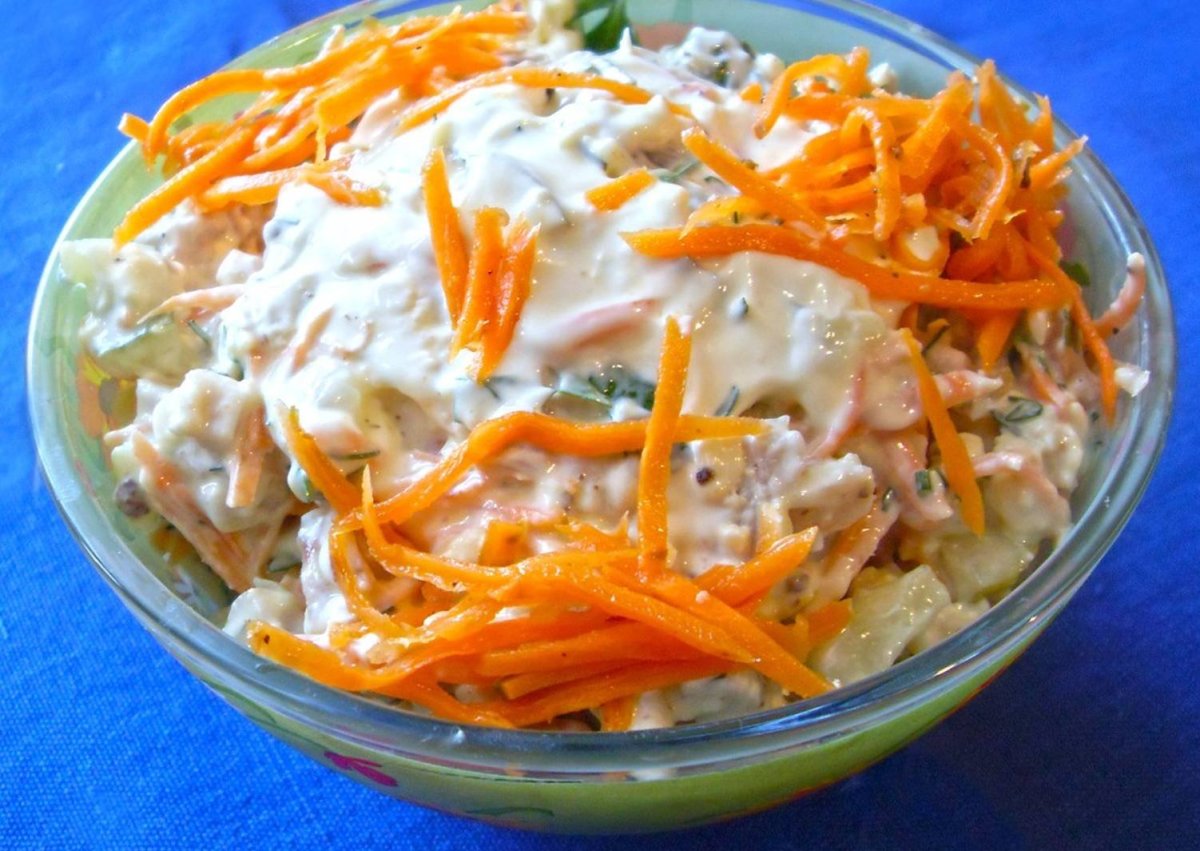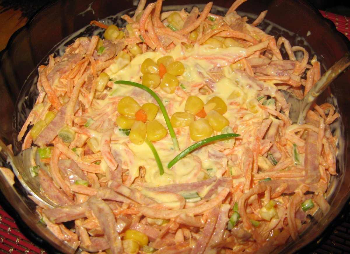 Салат Венеция с копченой колбасой и морковью