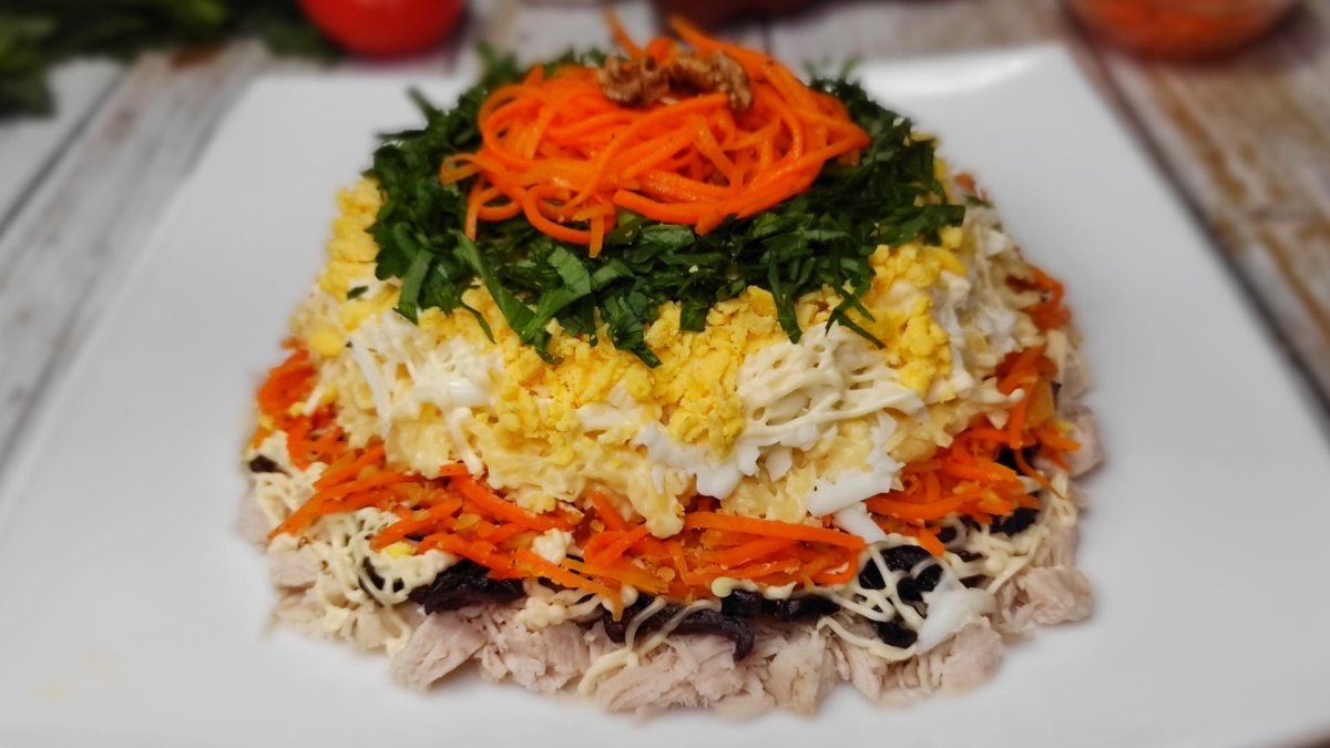 Салат Венеция с корейской морковью и курицей